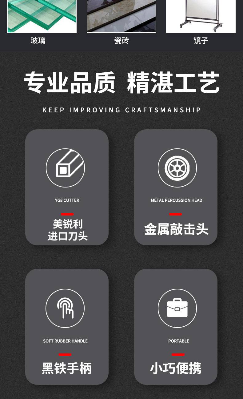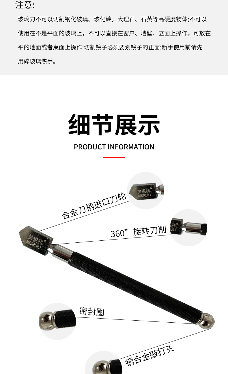 Pemotong kaca kepala rol berlian untuk ubin lantai, pemotong tabung kaca, pengikis genggam, pasokan produsen