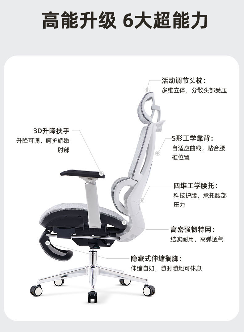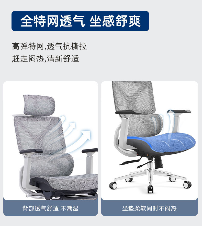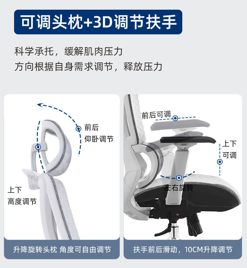 Kursi ergonomis yang dapat diatur, kursi putar komputer kantor rumah pinggang tidur nyaman