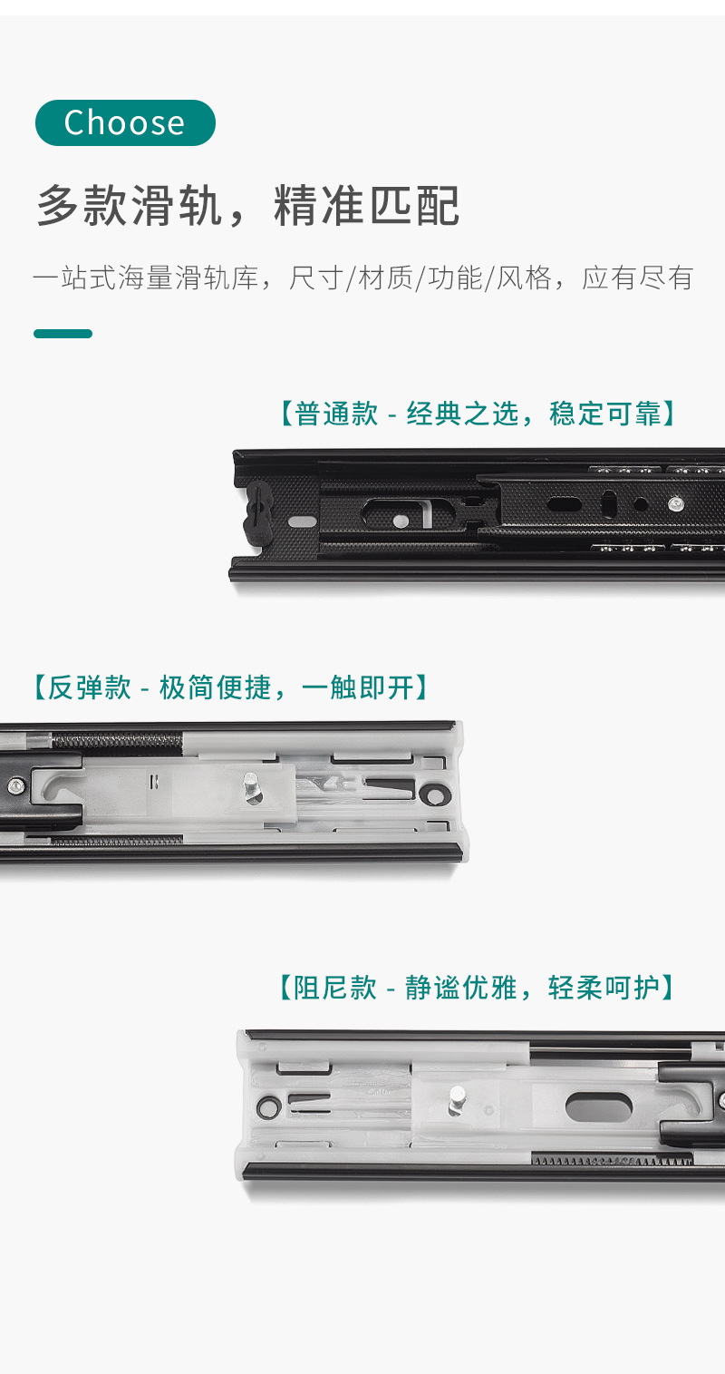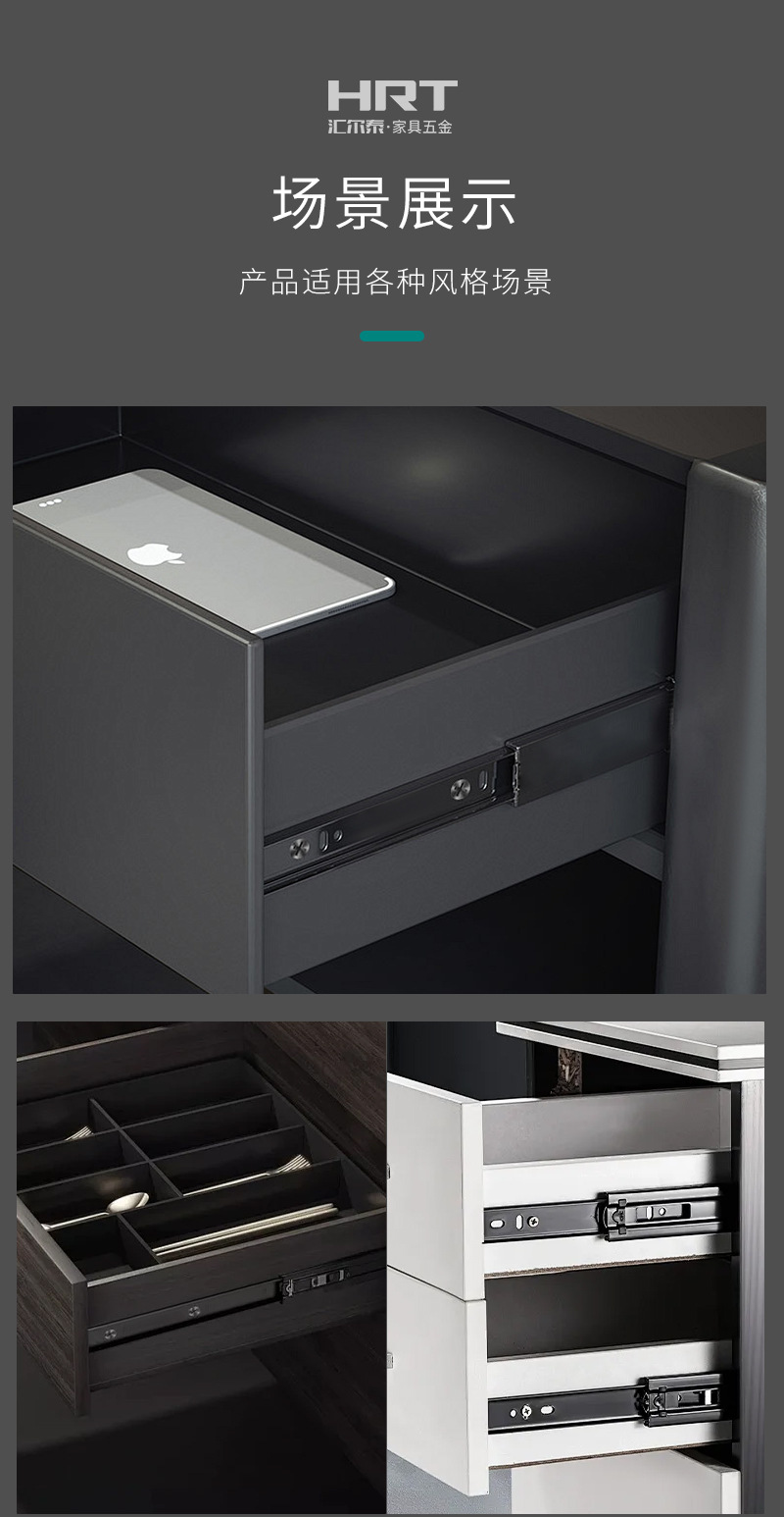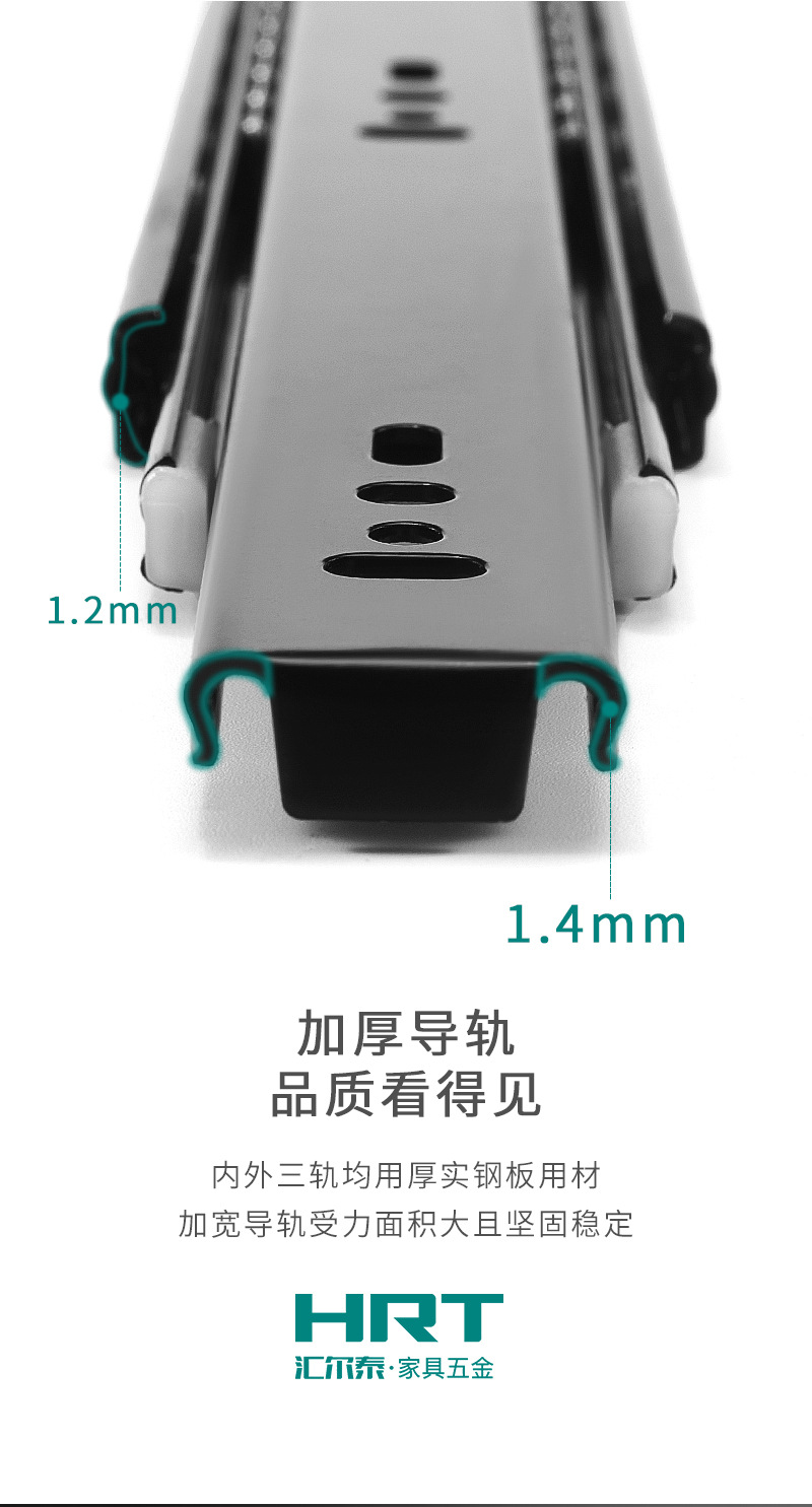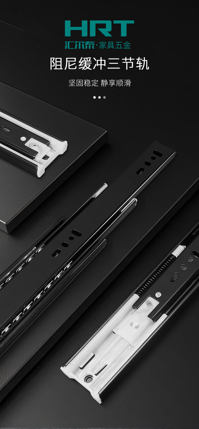 汇尔泰缓冲阻尼滑轨 橱柜冷轧钢三节滑轨 电脑桌抽屉静音阻尼导轨