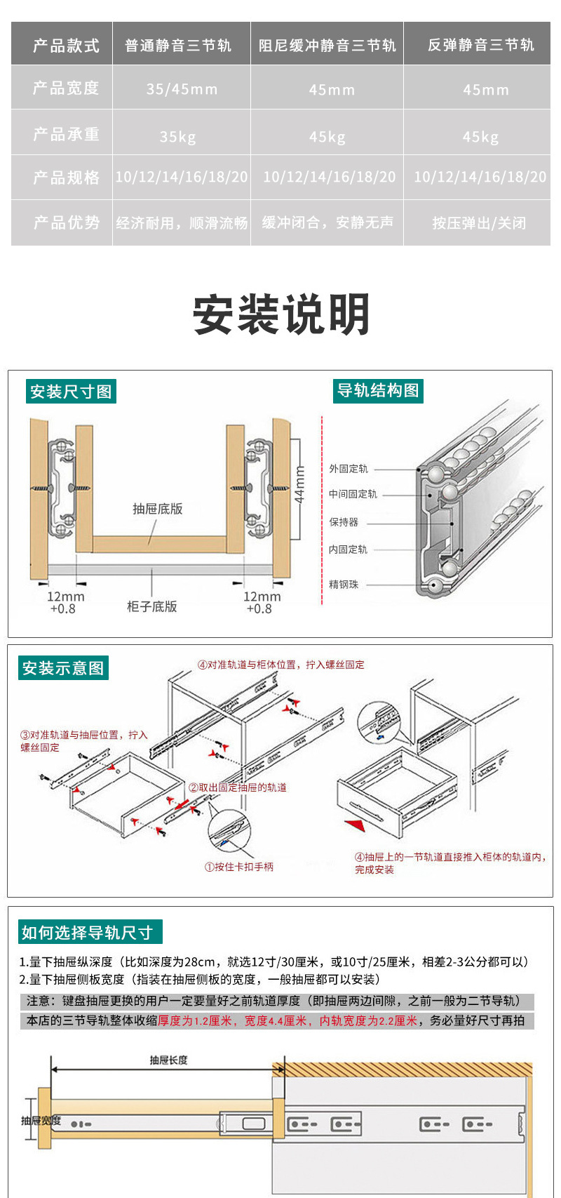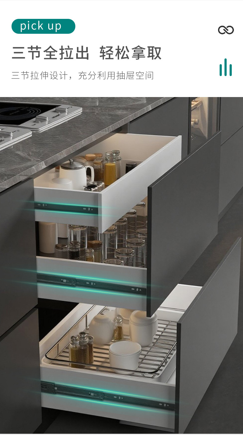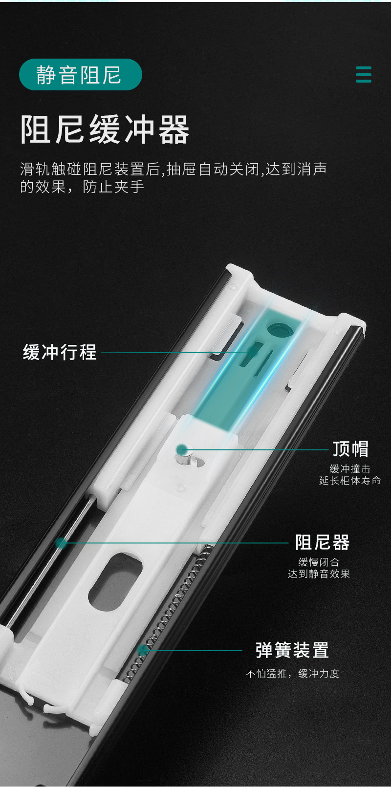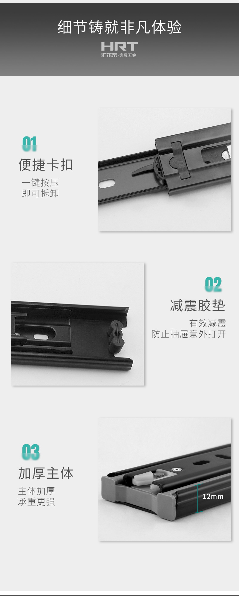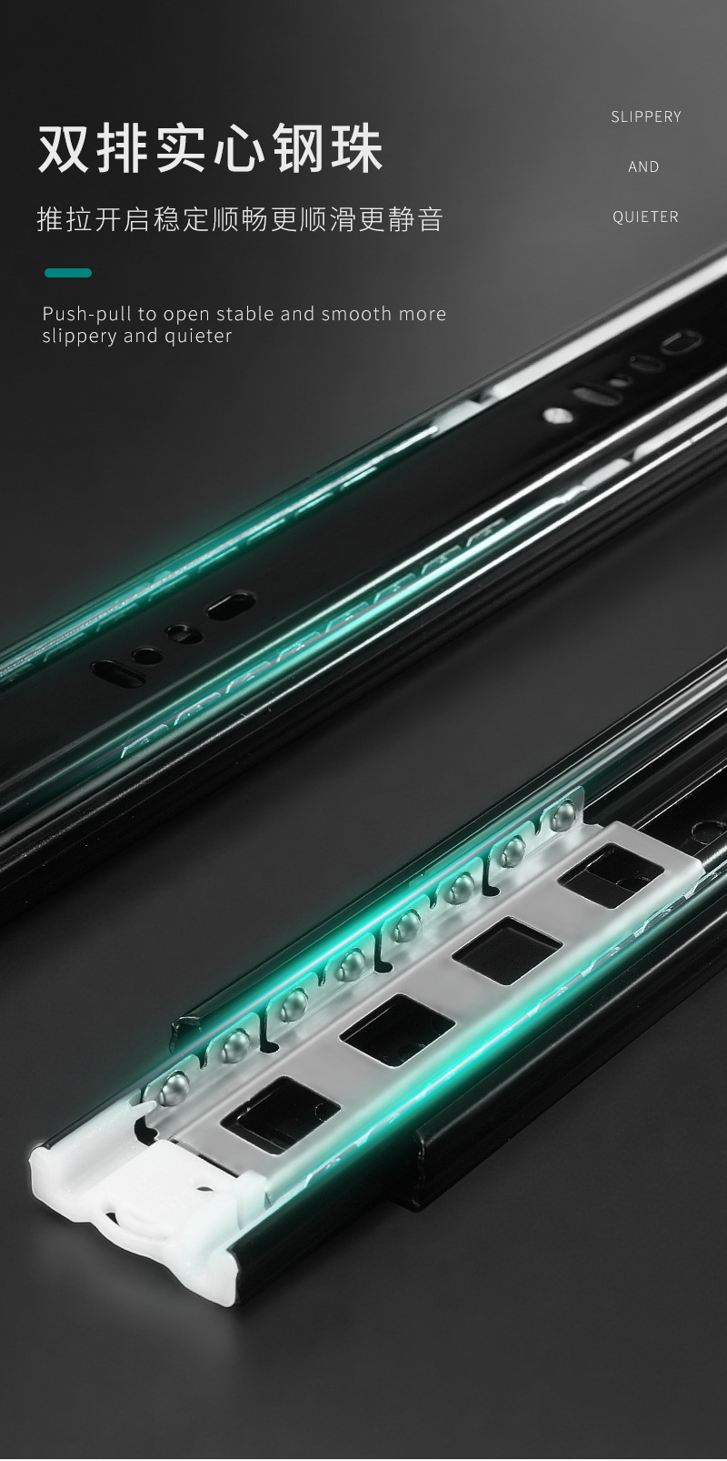 汇尔泰缓冲阻尼滑轨 橱柜冷轧钢三节滑轨 电脑桌抽屉静音阻尼导轨