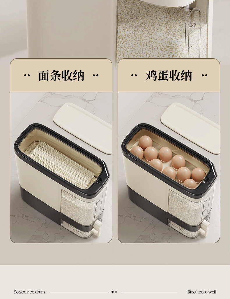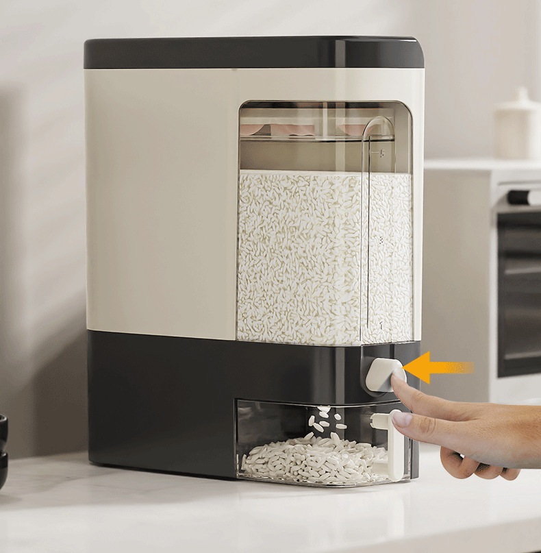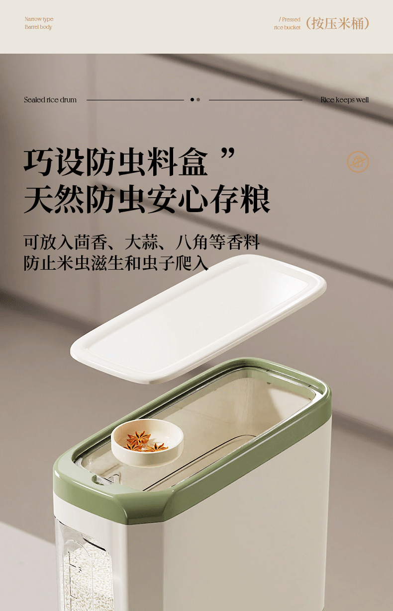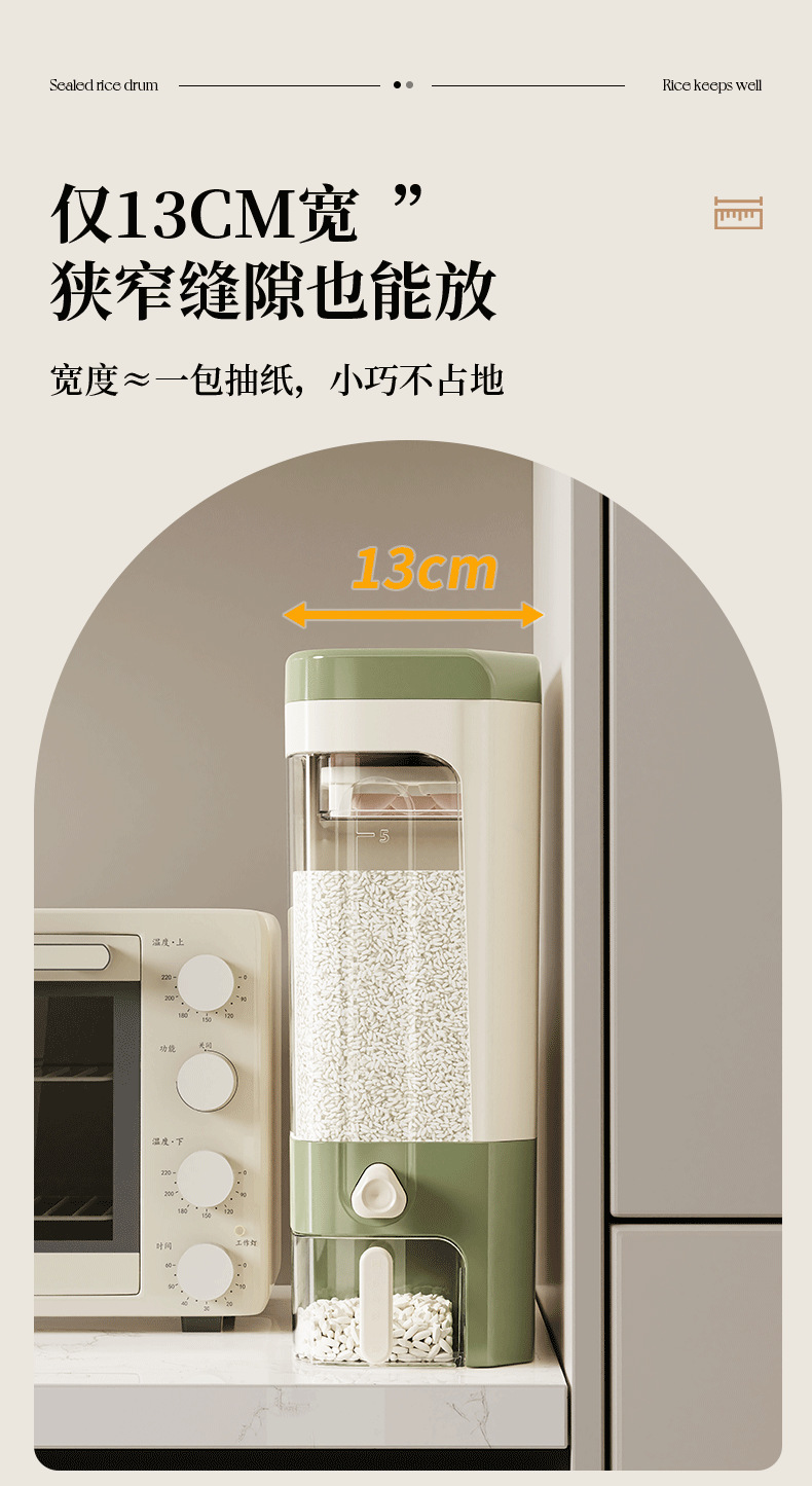 Wadah beras tertutup gaya Jepang, kotak penyimpanan beras anti serangga dan anti lembap, tempat penyimpanan beras dapur, ember beras plastik rumah tangga dengan pengukur celah.