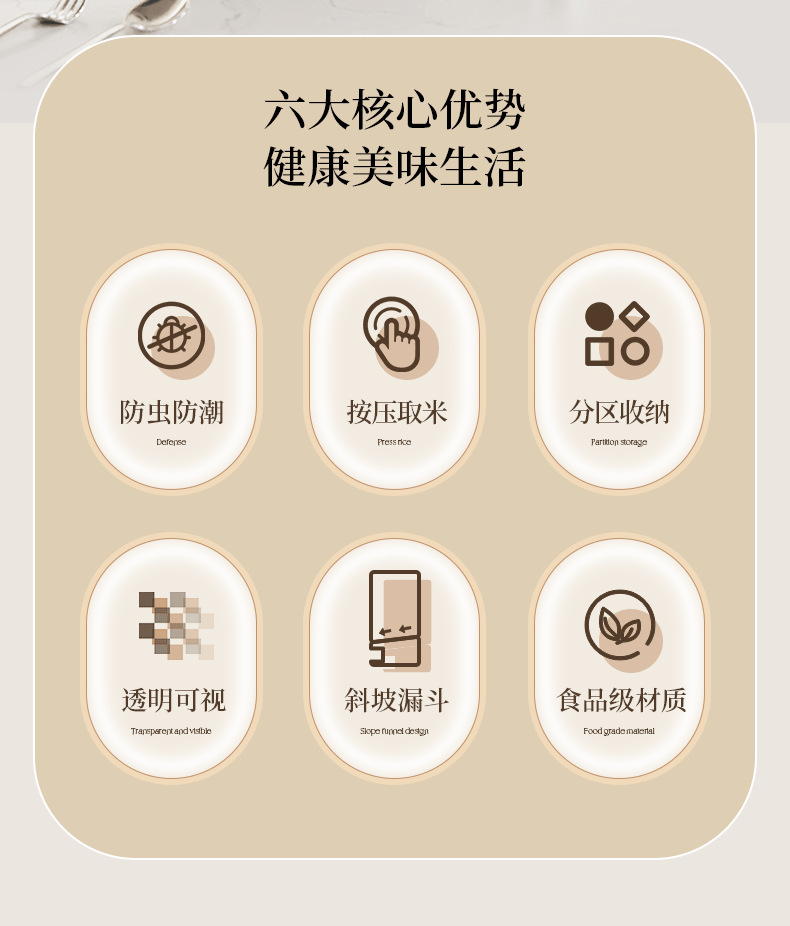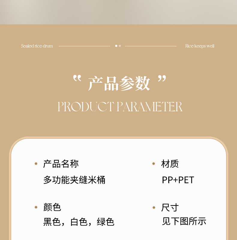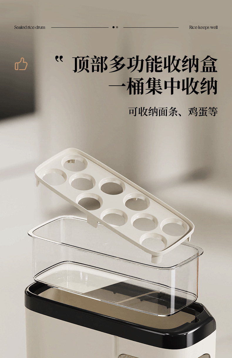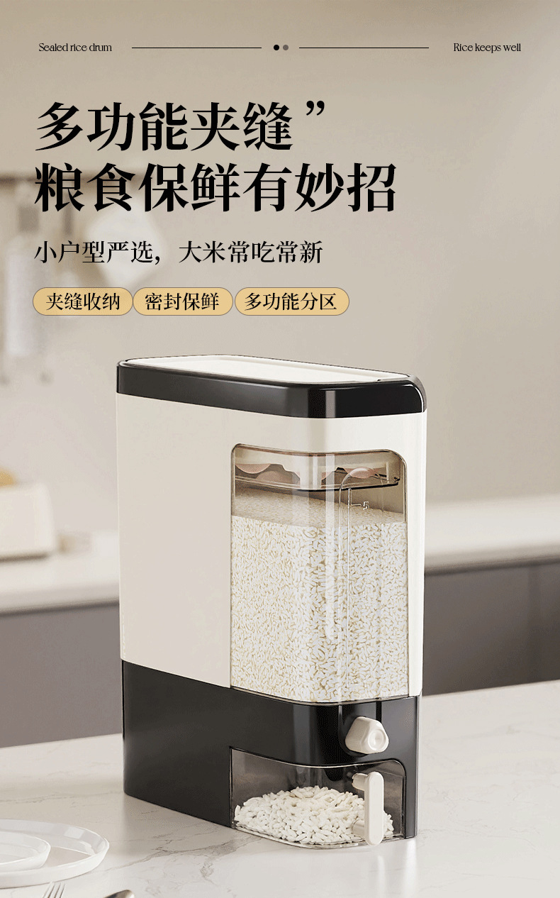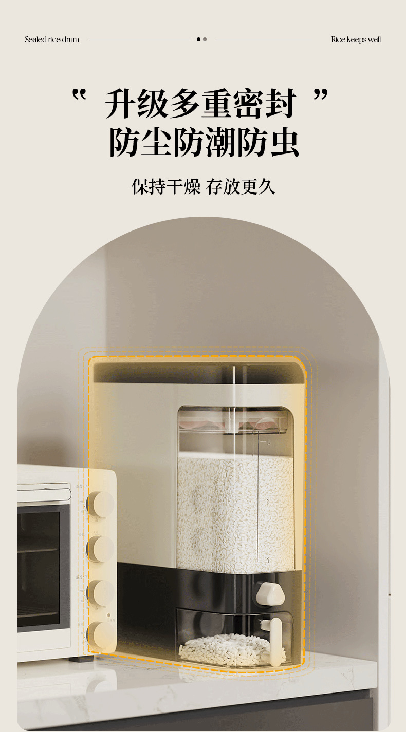 Wadah beras tertutup gaya Jepang, kotak penyimpanan beras anti serangga dan anti lembap, tempat penyimpanan beras dapur, ember beras plastik rumah tangga dengan pengukur celah.