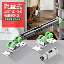 幽灵门隐形轨道吊轮五金配件平移推拉门双向缓冲无轨木门吊轮滑轮