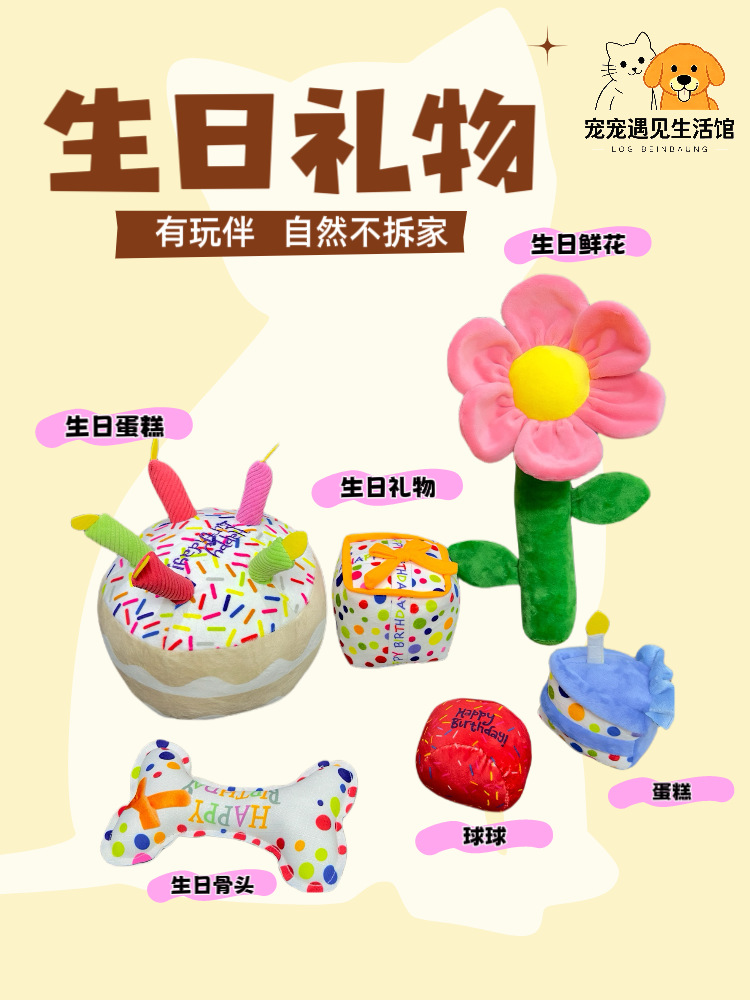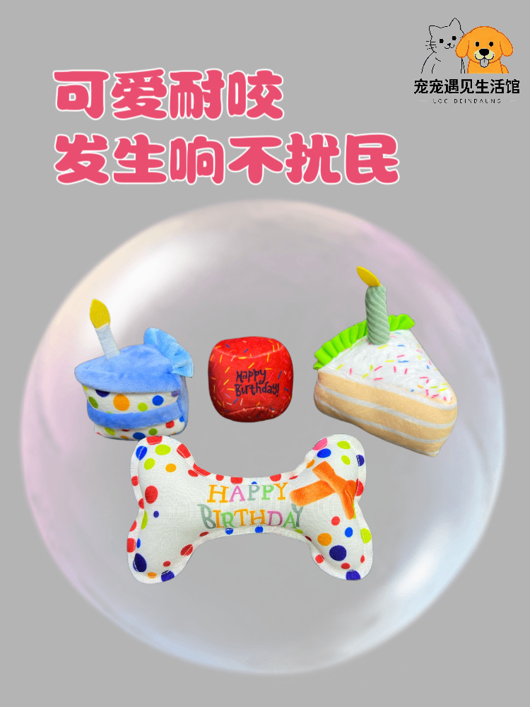 Perlengkapan hewan peliharaan mainan kue seri ulang tahun anjing dan kucing boneka tahan gigitan tahan gigitan dan tahan aus.