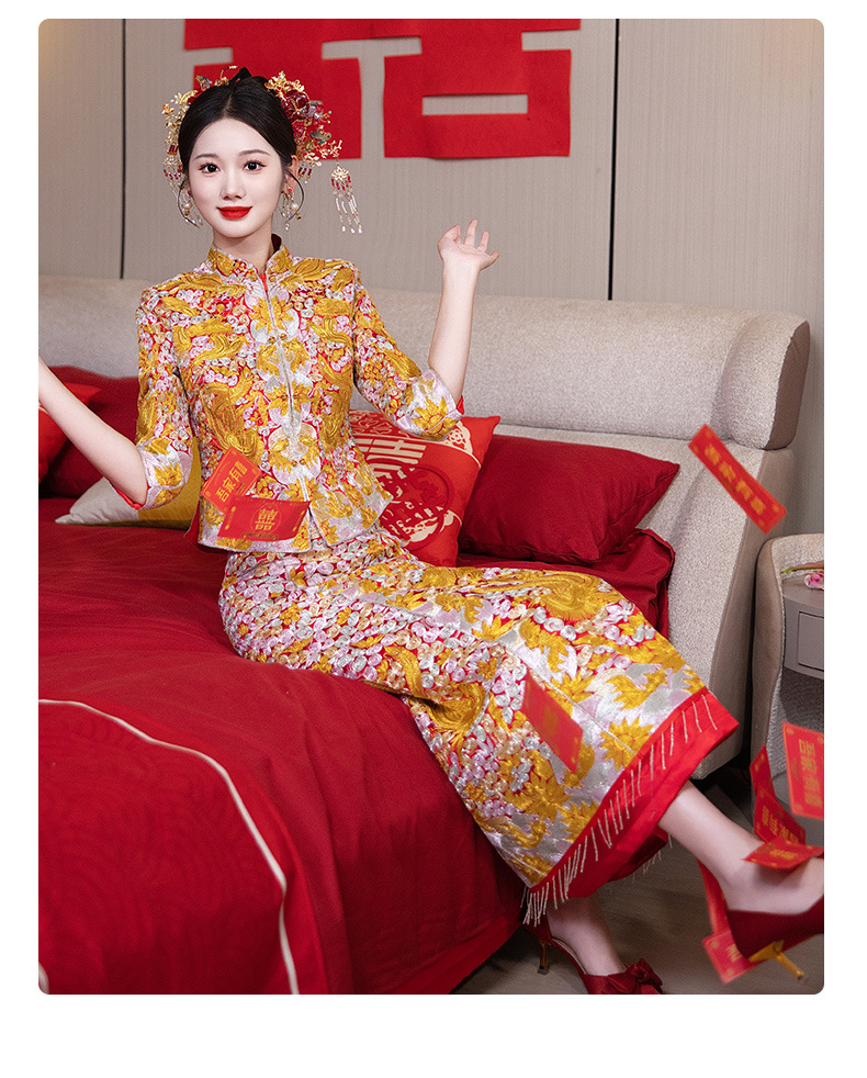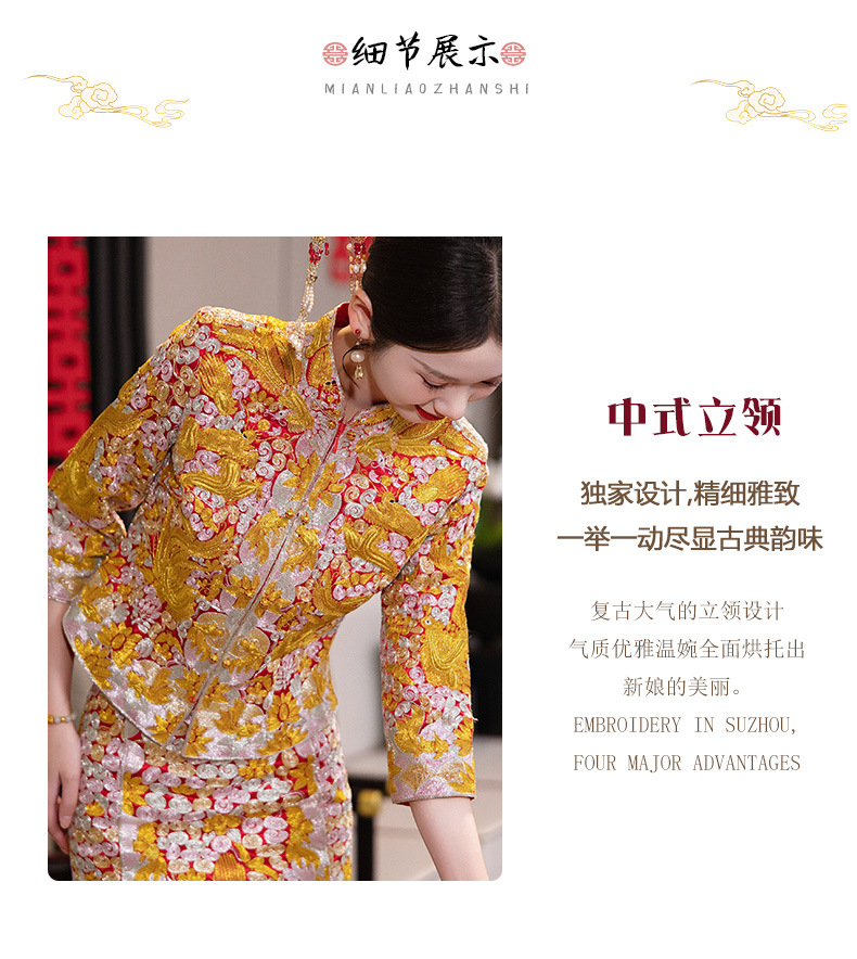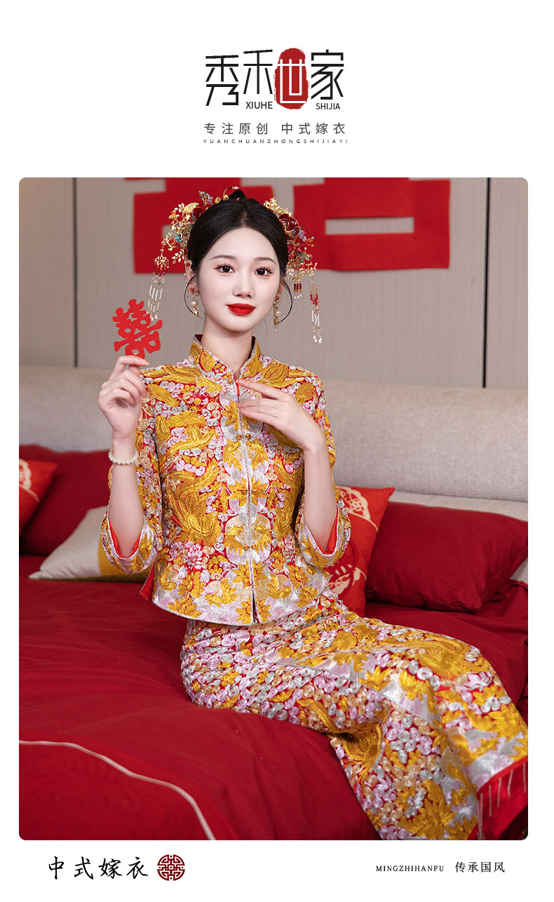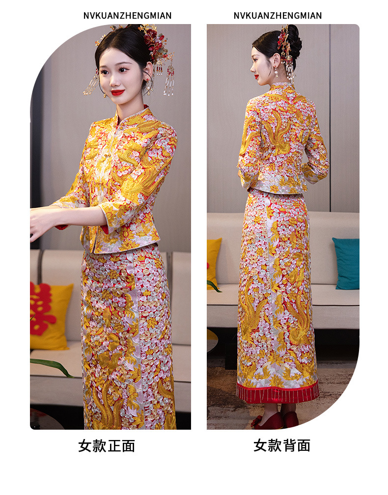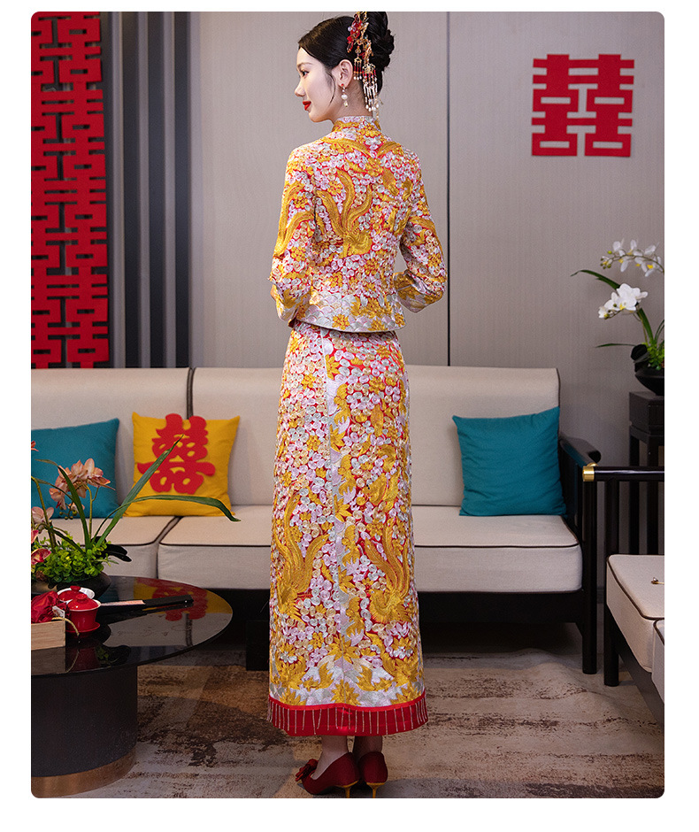 Gaun pengantin Xiuhe 2026 gaya baru motif naga dan phoenix, gaun pernikahan lima keberkatan, gaun formal, gaun pesta, gaun pengantin, pakaian pernikahan.