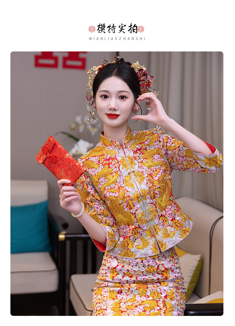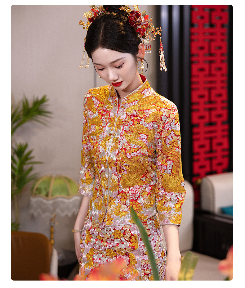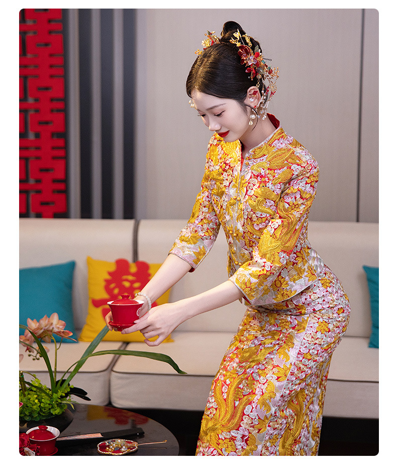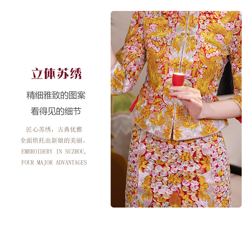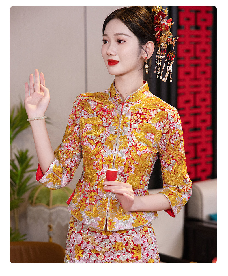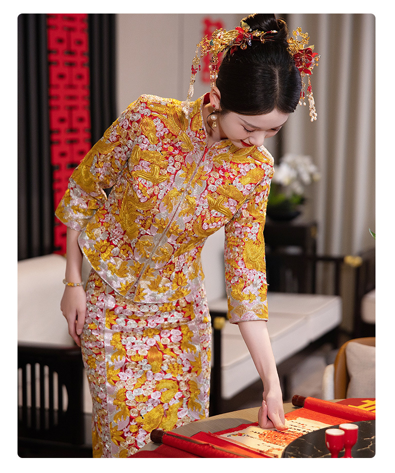 Gaun pengantin Xiuhe 2026 gaya baru motif naga dan phoenix, gaun pernikahan lima keberkatan, gaun formal, gaun pesta, gaun pengantin, pakaian pernikahan.