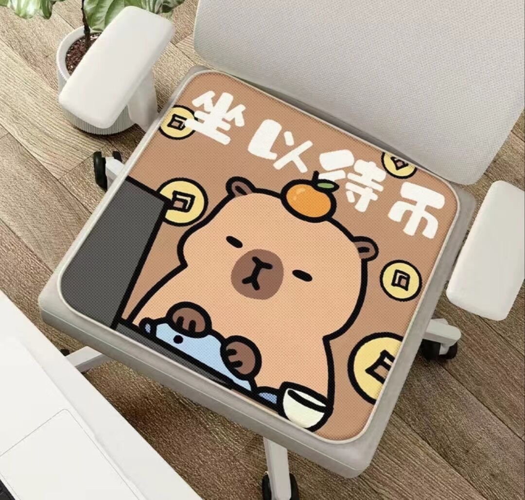 卡皮巴拉座椅冰丝坐垫方形卡通上班族搞笑创意夏季不沾毛冰丝坐垫
