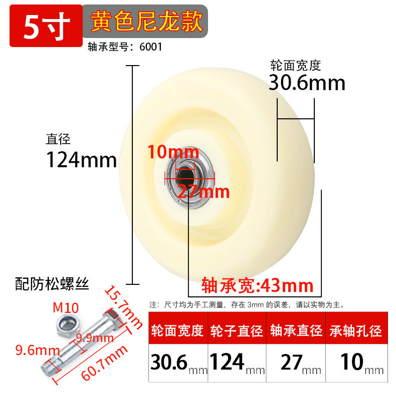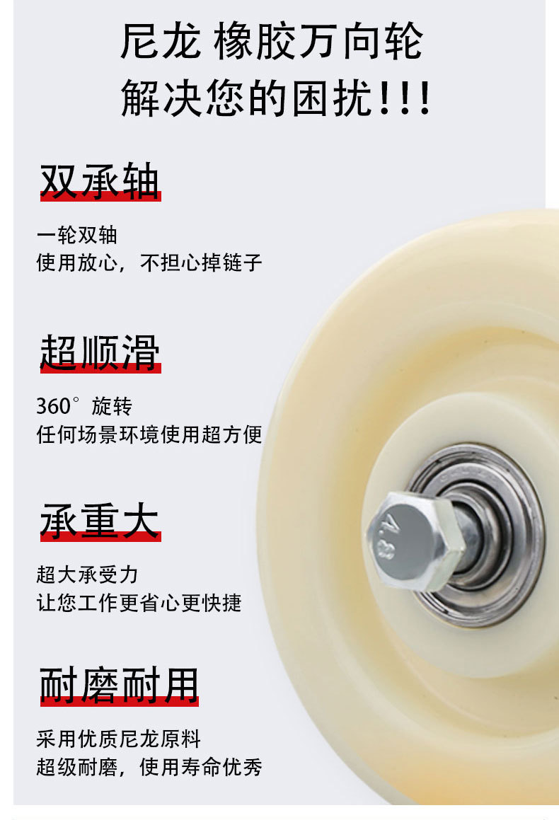 Roda Universal Nilon Roda Tunggal Kastor Tugas Berat 2 Inci 5 Inci Roda Trailer Troli Roda Datar Bantalan Beban