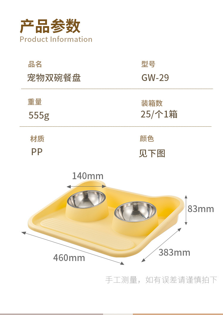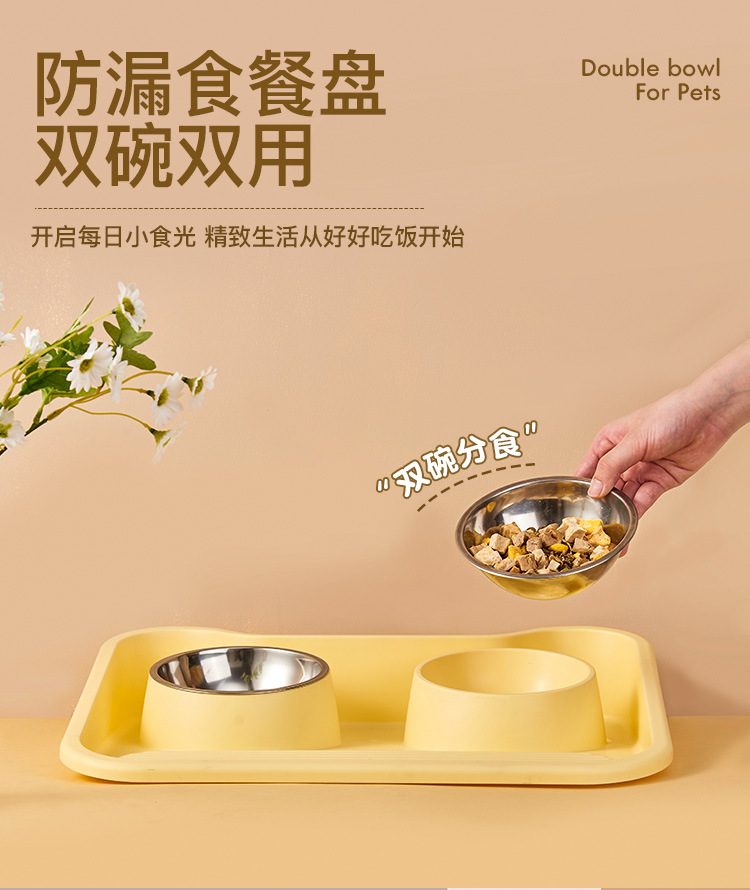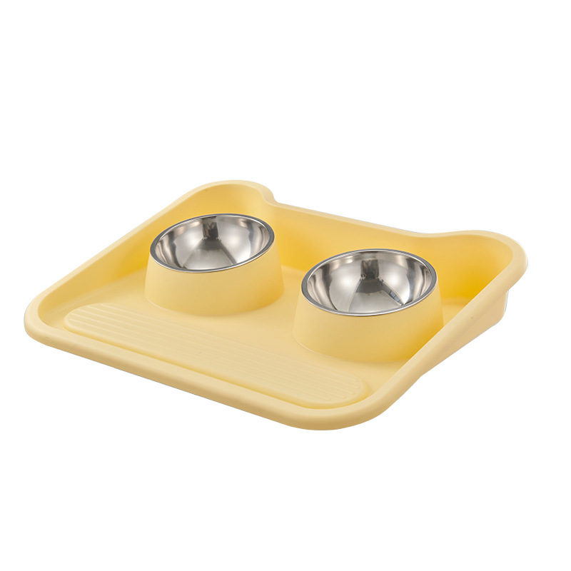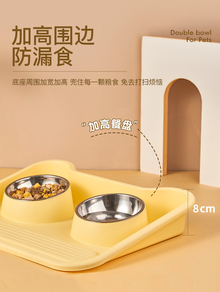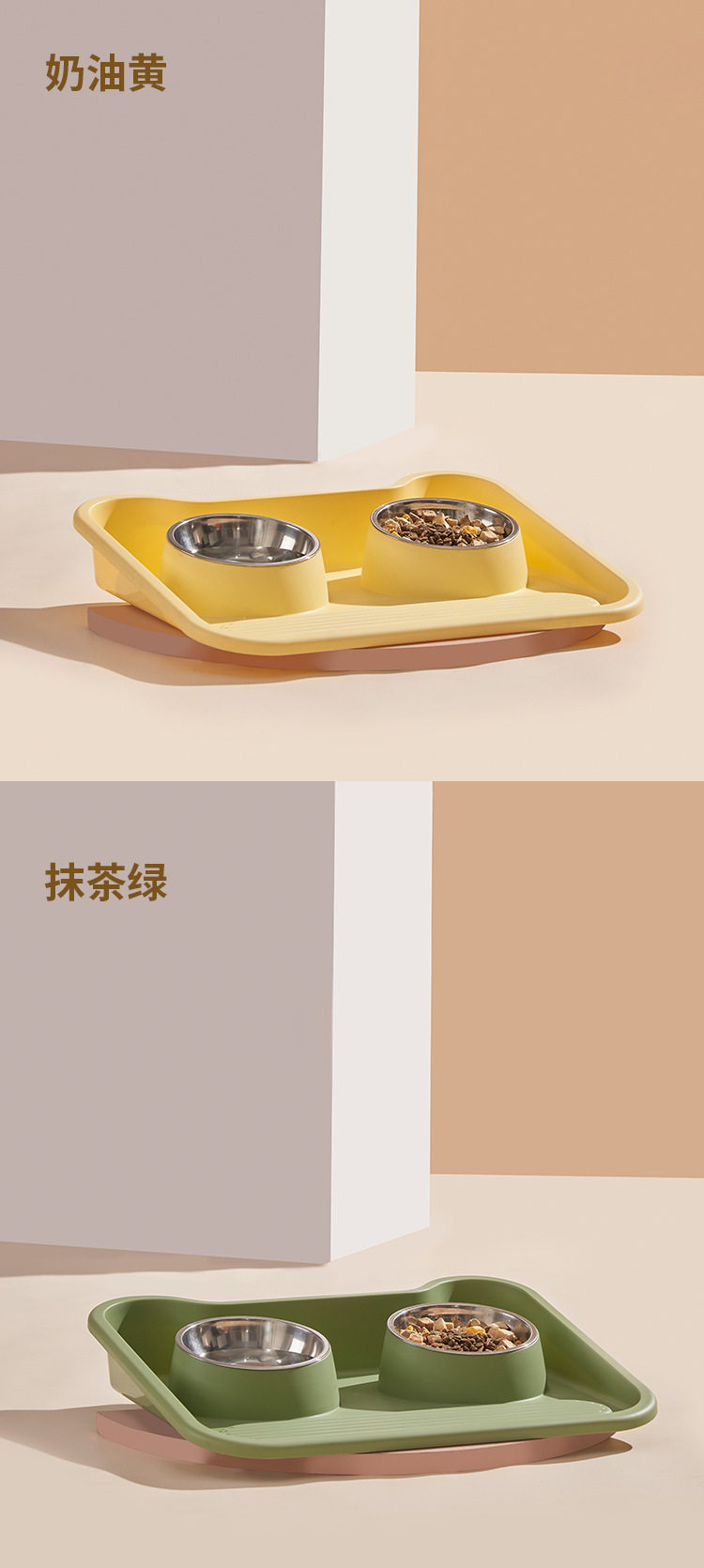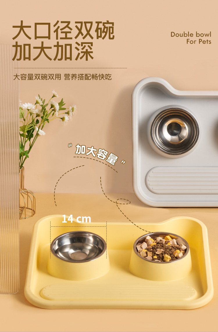 Set makanan kucing dan anjing, perlindungan leher miring anti bocor dua mangkuk set makanan plastik stainless steel piring hewan peliharaan mangkuk makanan anjing