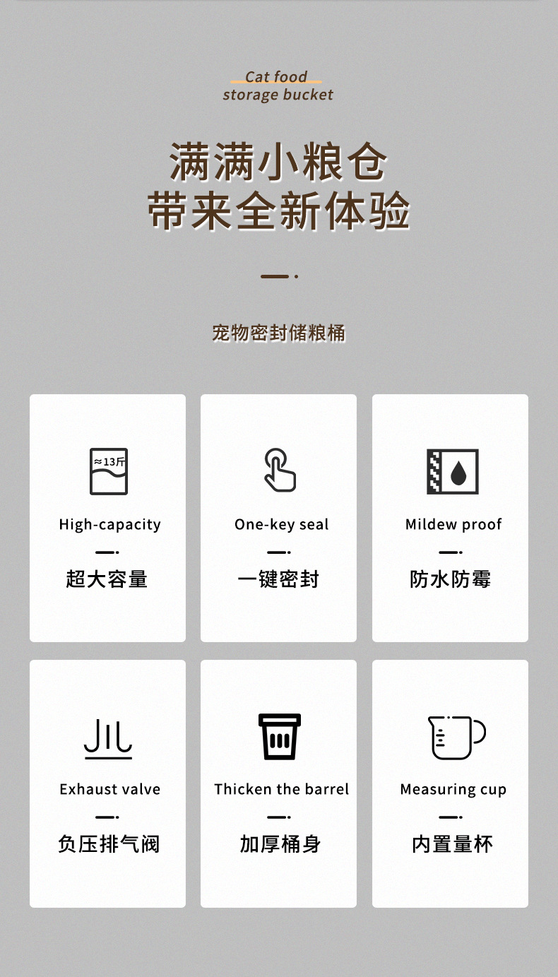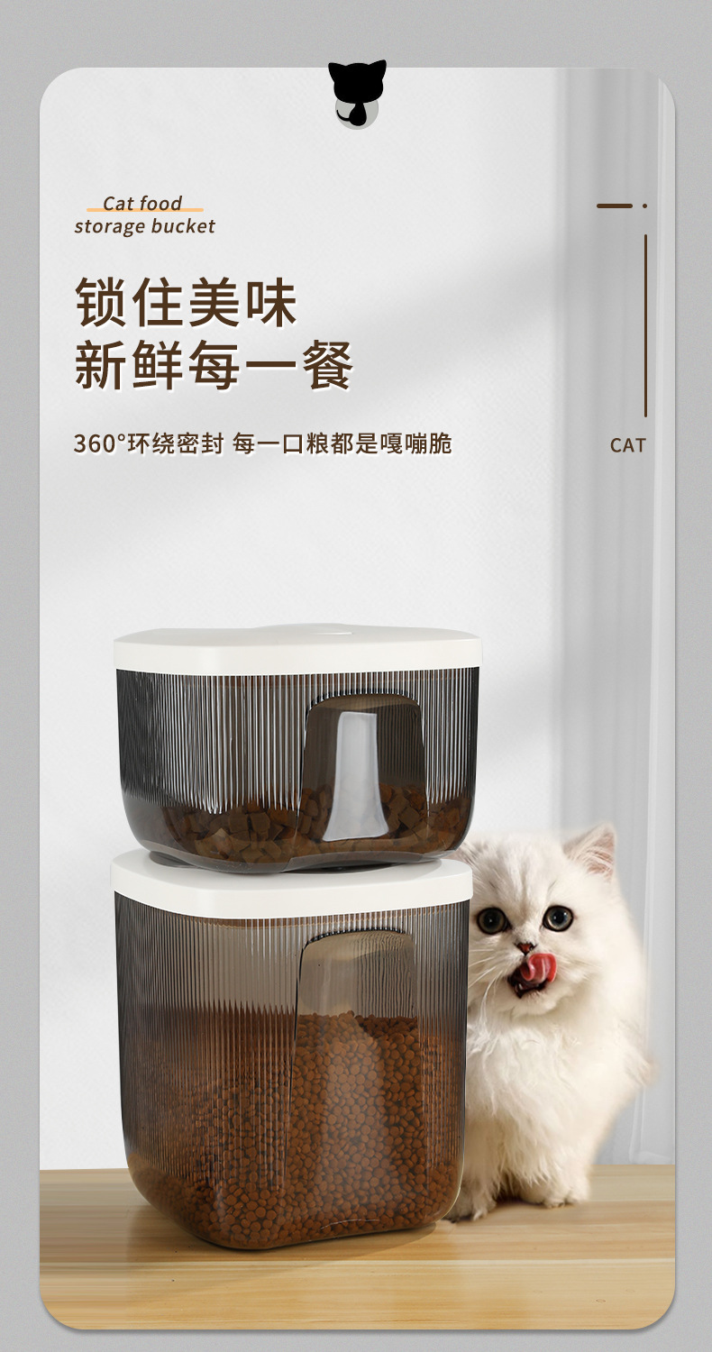 Ember penyimpanan makanan kucing, ember penyimpan makanan hewan peliharaan anjing tertutup anti lembab kering