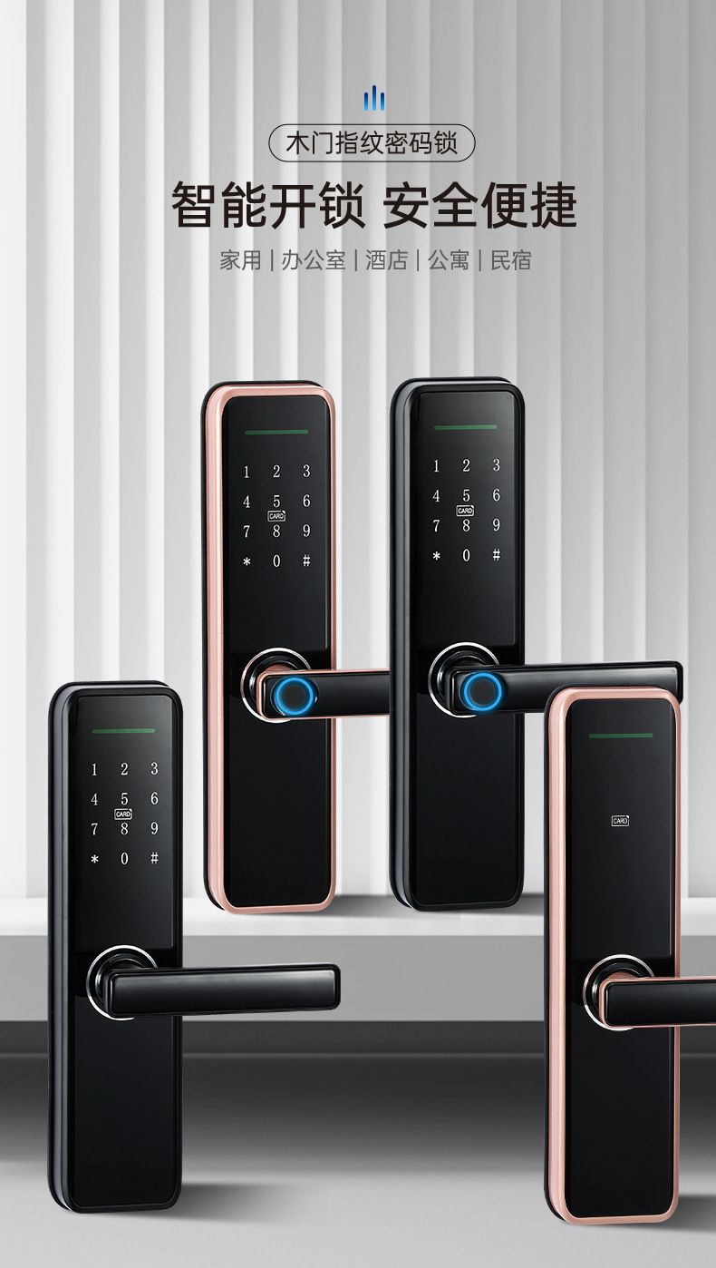 Kunci elektronik sidik jari, kunci rumah Hotel elektronik anti-maling, apartemen, pintu kayu dalam ruangan, lidah tunggal, kunci sandi universal