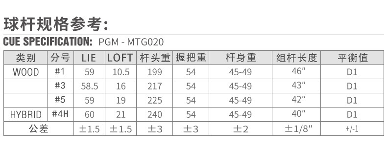 | 杆头材质 | #1木杆头:钛合金;#3-5,铁木杆:不锈钢;铁杆头:不锈钢 | |||
