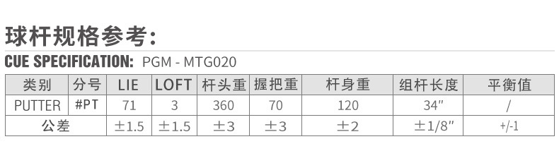 | 规 格 | 3支木杆+7支铁杆+1支推杆+1铁木杆+球包(共12支+球包) | |||