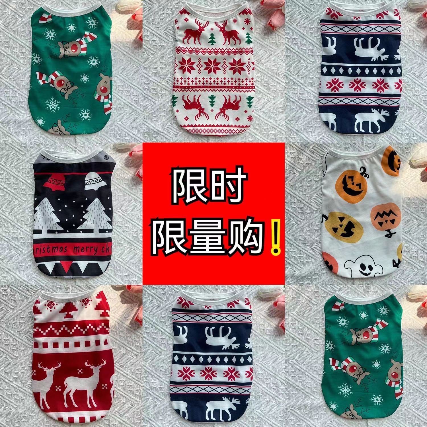 Rompi gaya Natal musim panas anjing kucing hewan peliharaan tipis bersirkulasi beruang Teddy pakaian hewan peliharaan anjing kecil
