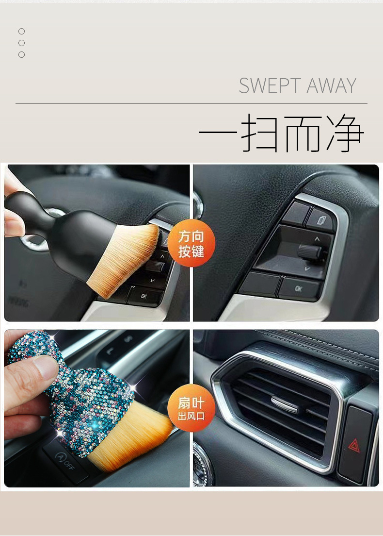 Kuas pembersih mobil lintas batas, sikat lembut pembersih debu mobil, sikat celah pembersih udara, Sikat pembersih berlian AC
