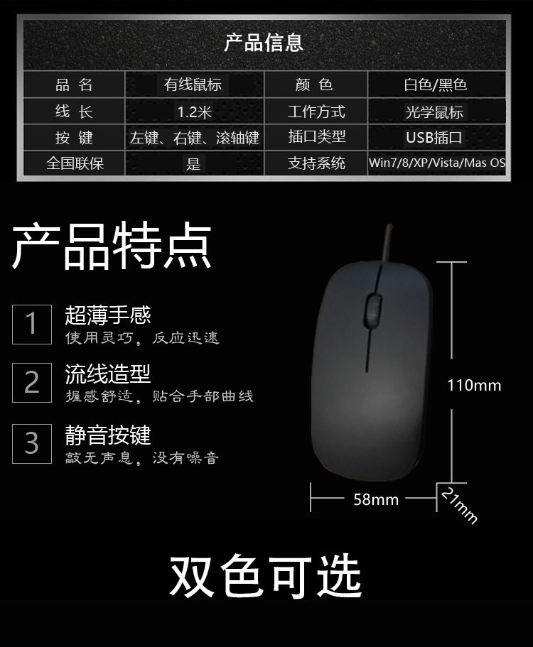 Cocok untuk aksesori komputer desktop Apple, mouse optik berkabel kecil untuk notebook, grosir USB ergonomis