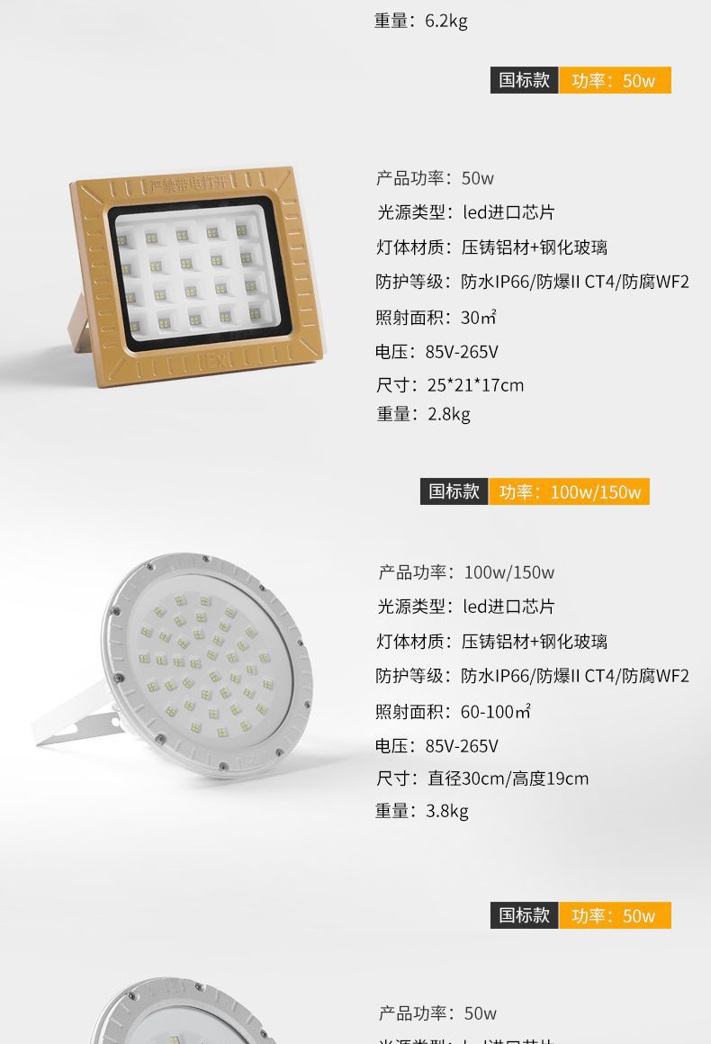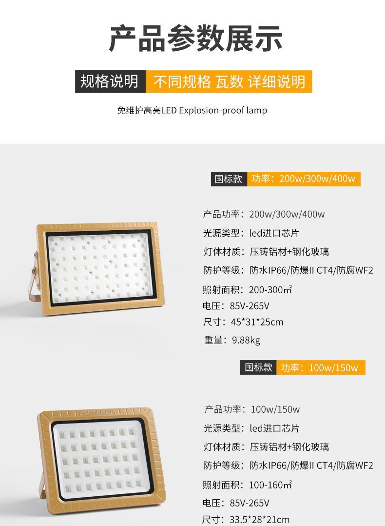 Lampu sorot LED, lampu sorot tahan ledakan standar nasional tahan ledakan stasiun gas terowongan kimia 200W lampu sorot tahan ledakan proyeksi