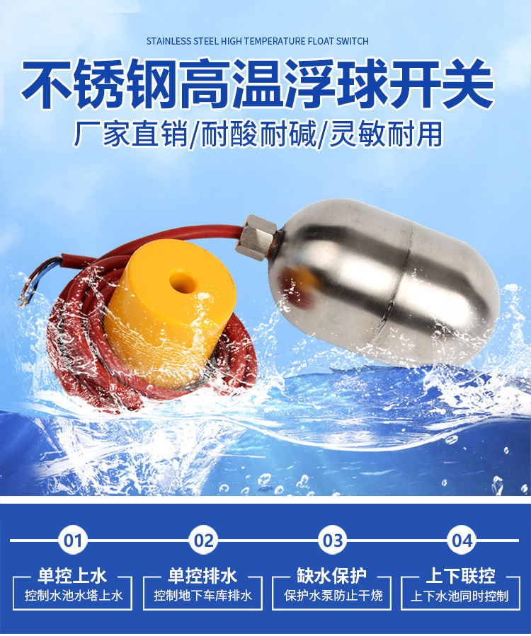 304 baja tahan karat tahan suhu tinggi cairan level float switch float otomatis pengontrol tingkat air asam merkuri dan tahan alkali