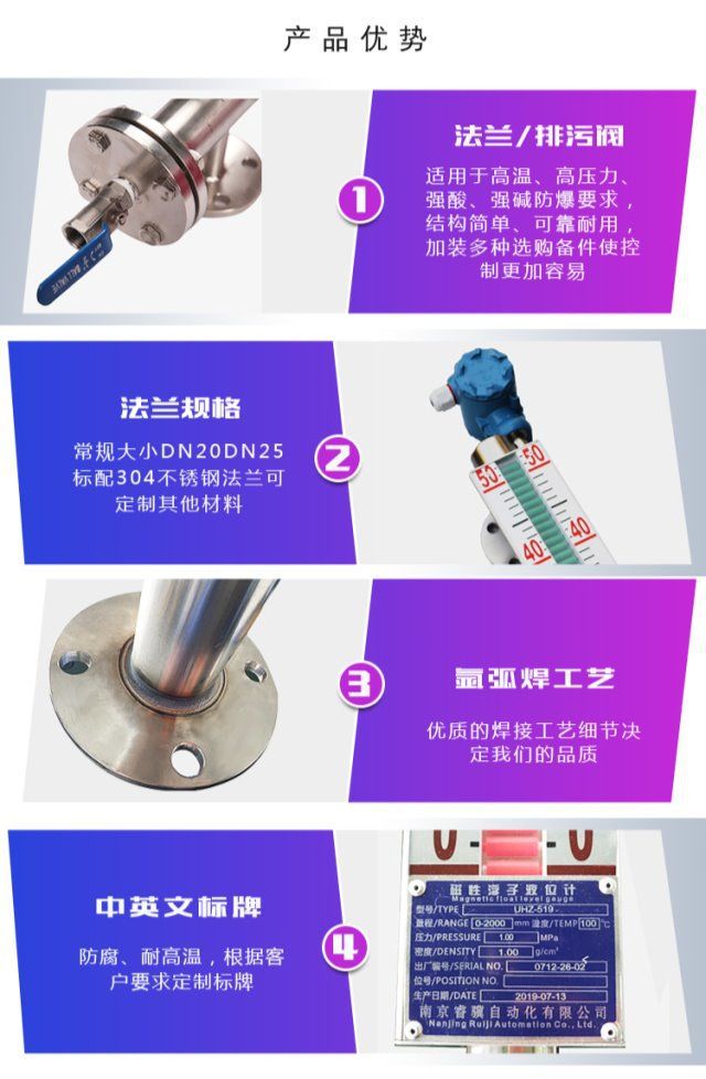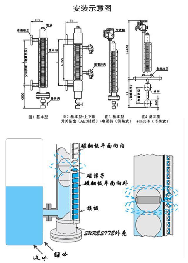 Pengukur level penutup magnetik, alat pengukur level minyak saklar magnetik dengan transmisi jarak jauh 4-20mA