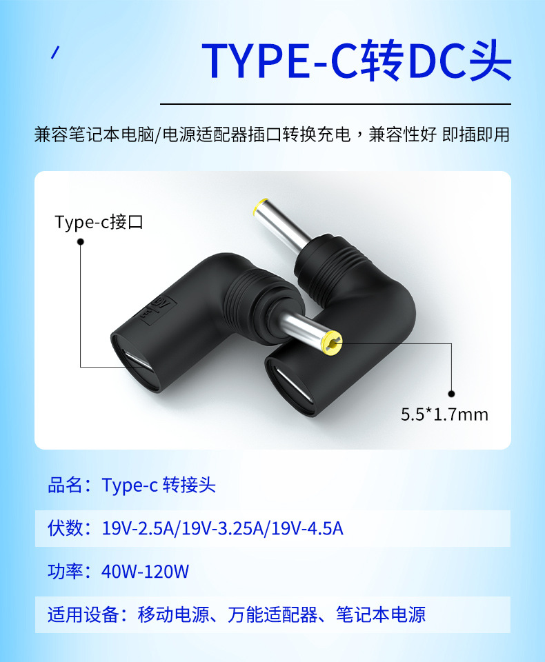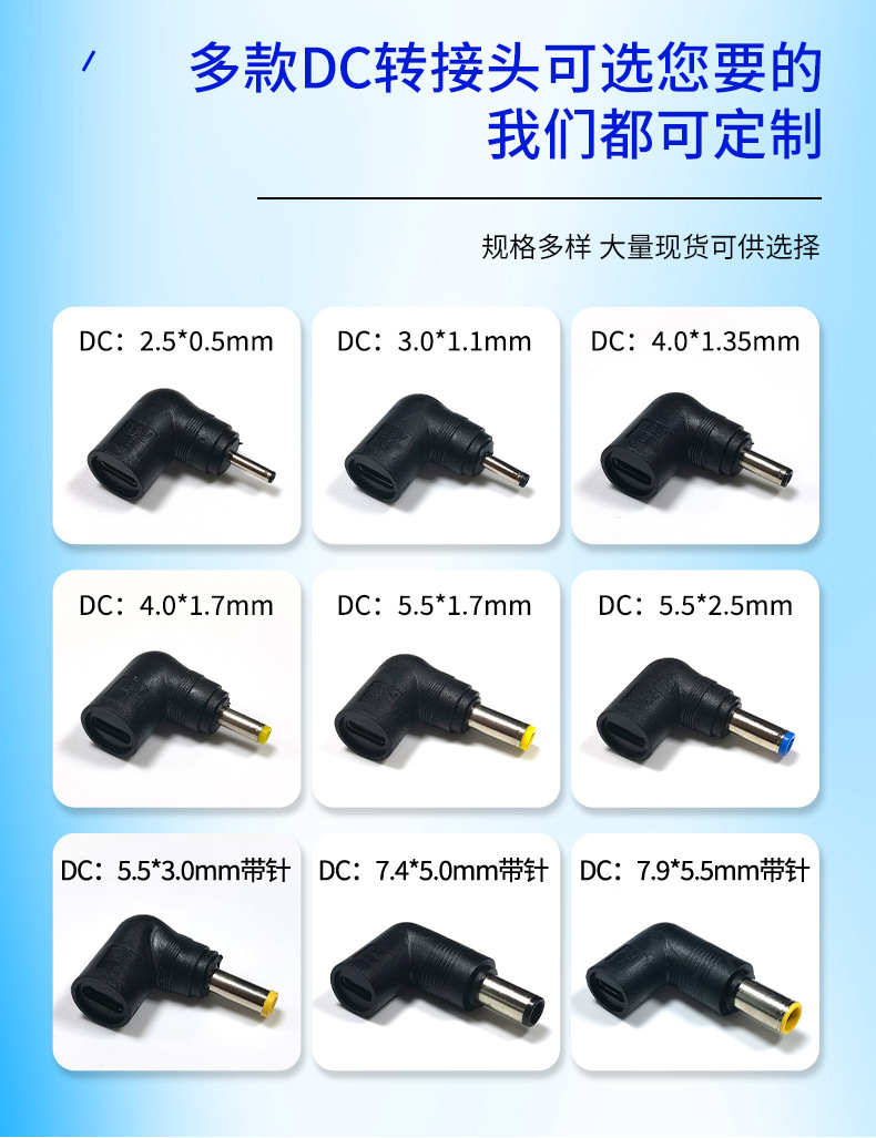 Adaptor dc pengisi daya notebook adaptor dc tempat duduk wanita persegi Port tipe c siku adaptor tipe c