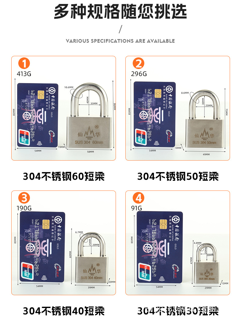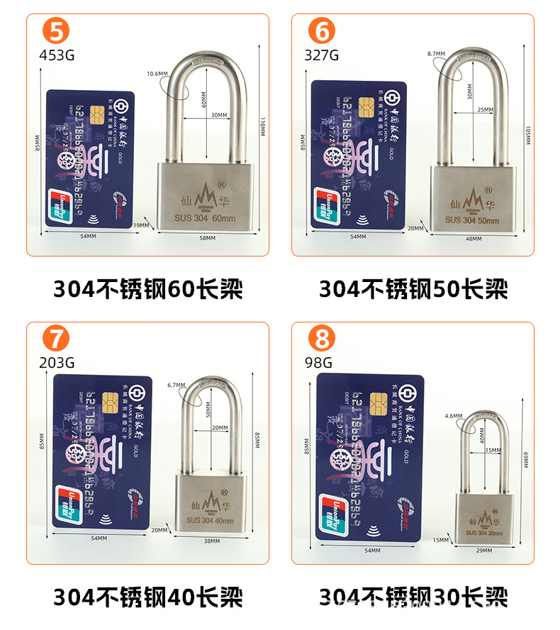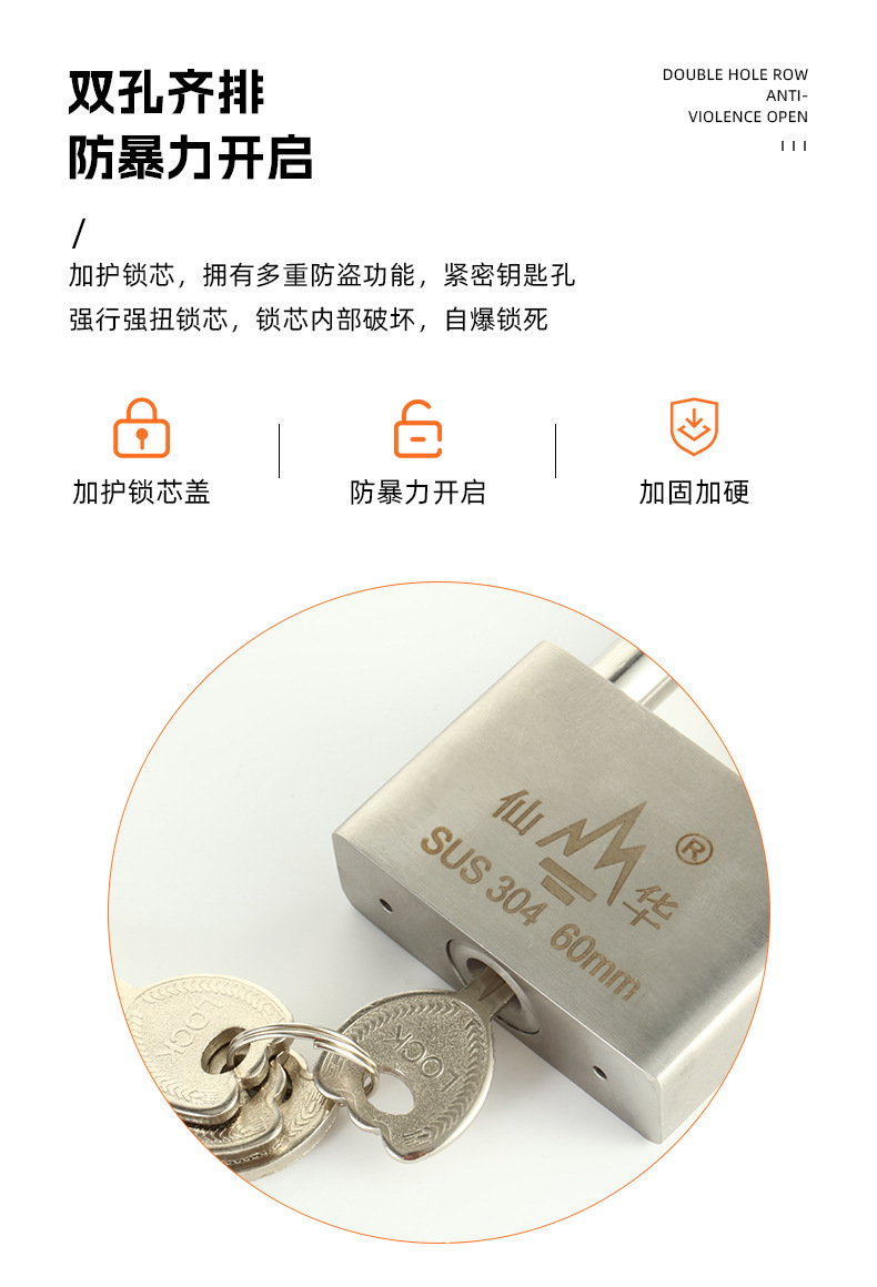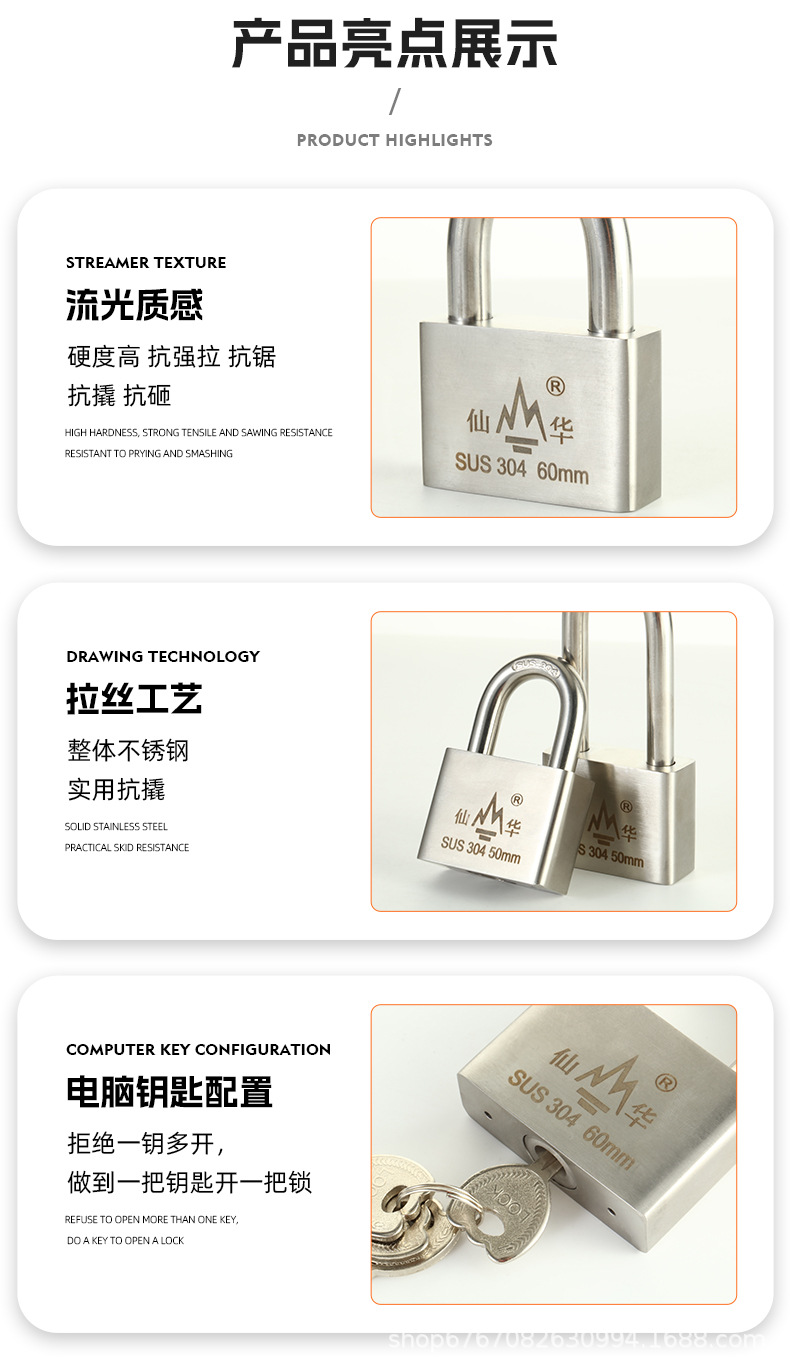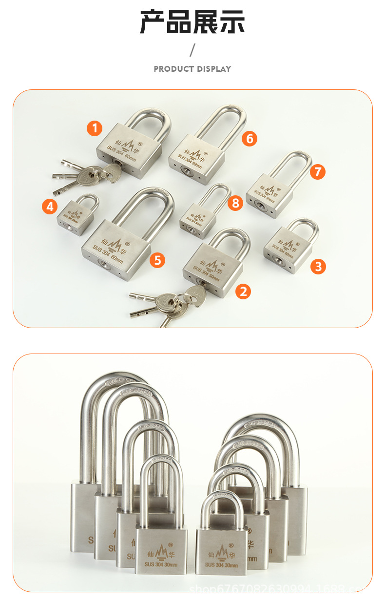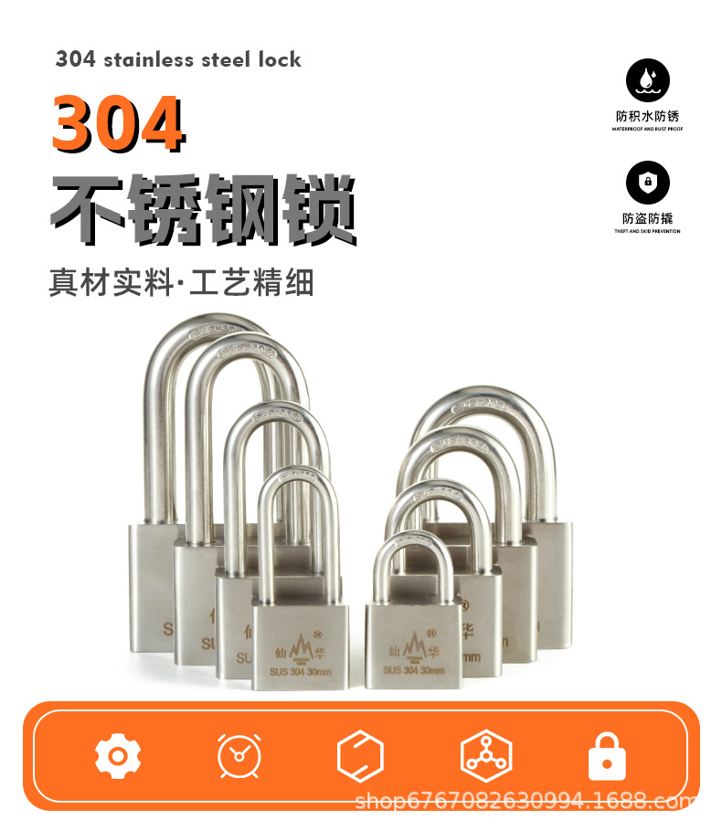 Gembok baja tahan karat 304 merek Xianhua anti-karat tahan air anti Maling anti gunting pabrik grosir