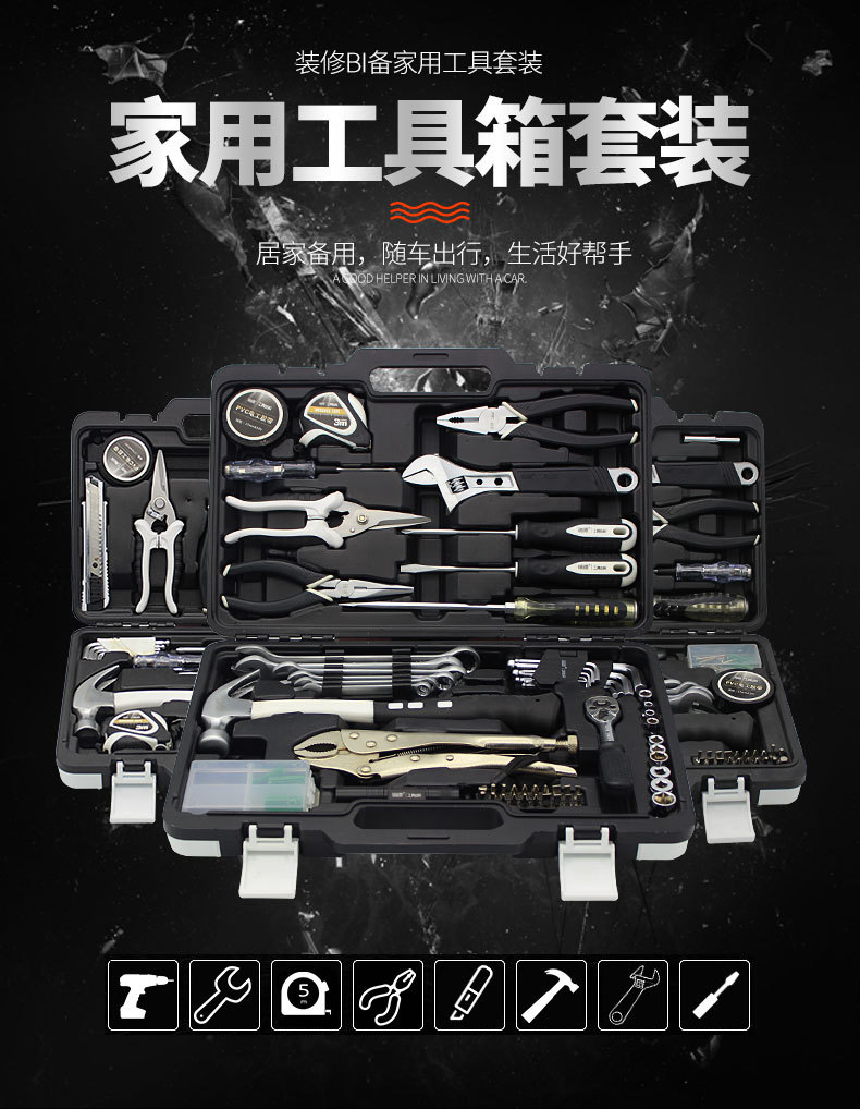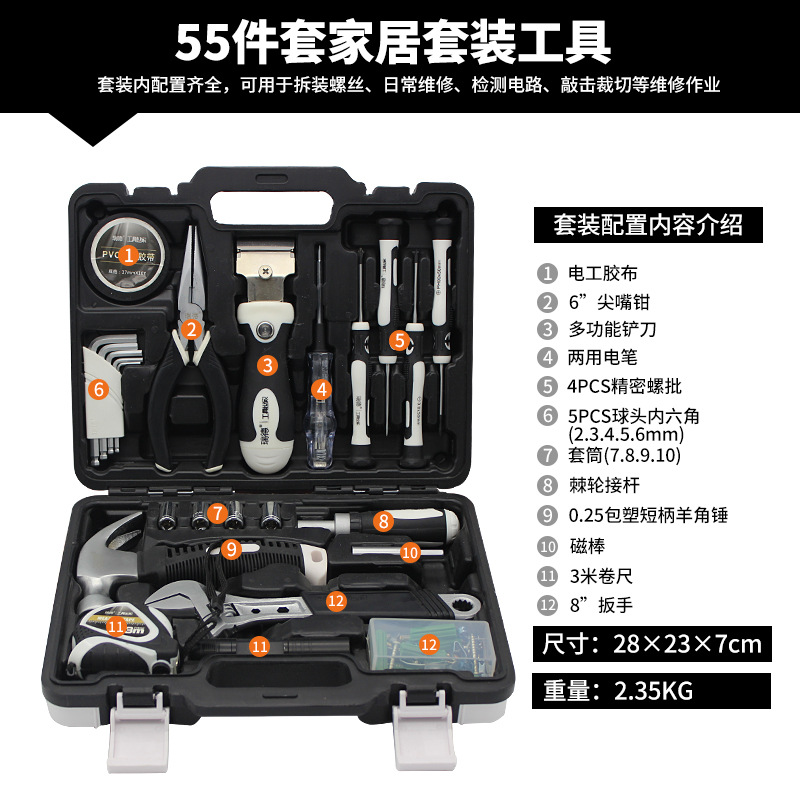 Perangkat keras merah setelan kombinasi peralatan pemeliharaan manual rumah tangga kotak muatan mobil set hadiah grosir