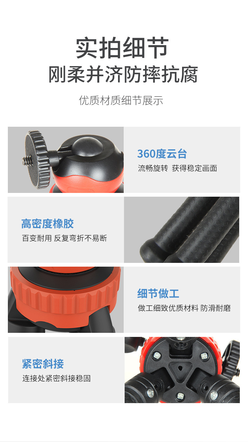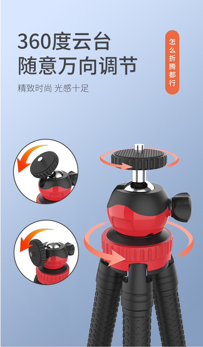 Tripod gurita gurita, tripod gurita, braket selfie vlog video pendek, klip ponsel, penstabil kamera tunggal mikro
