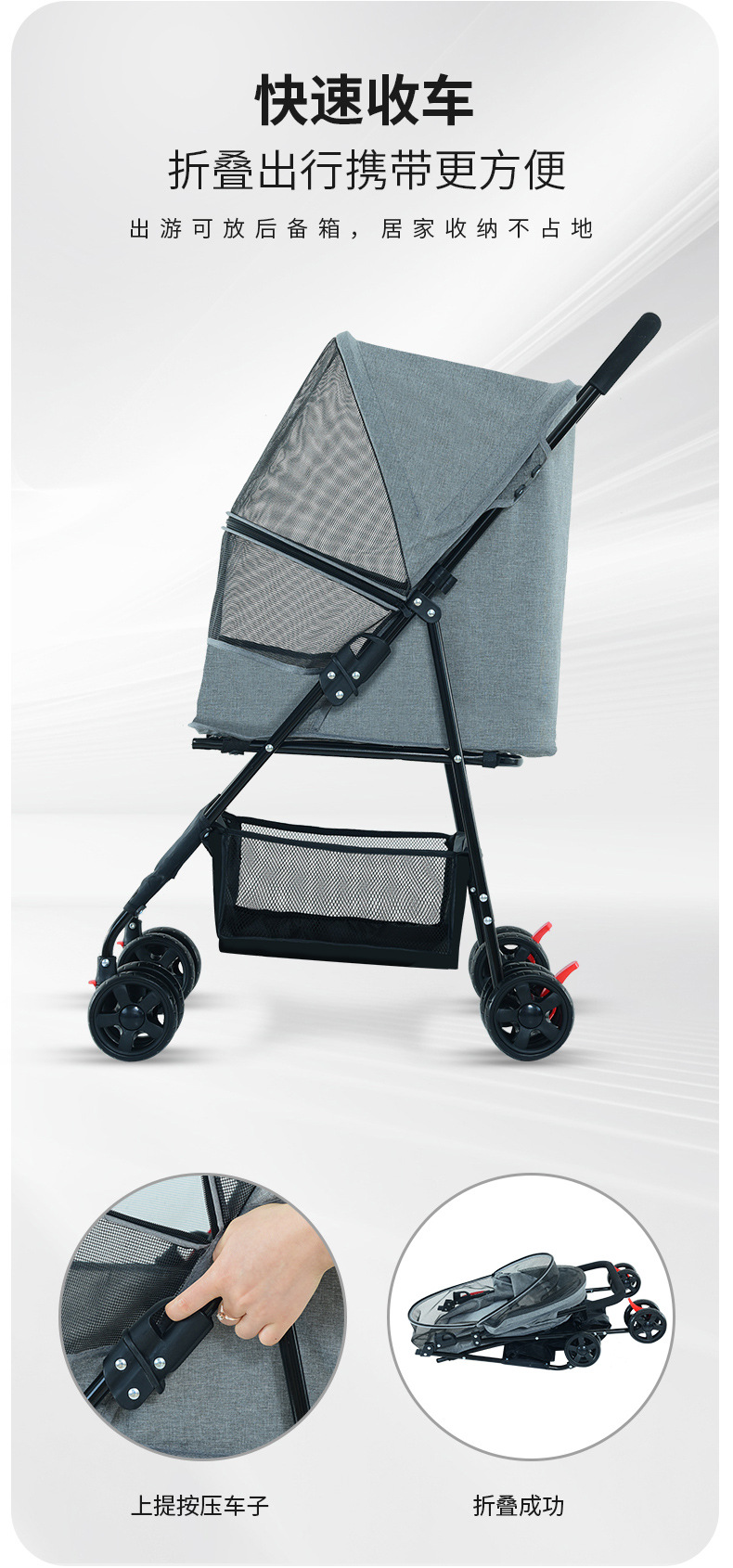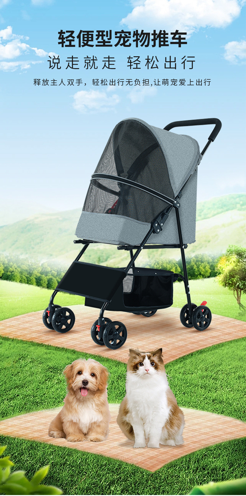 Stroller hewan peliharaan dari pabrik BNDC, stroller anjing untuk luar ruangan, stroller hewan peliharaan lipat, stroller hewan peliharaan ringan untuk luar ruangan