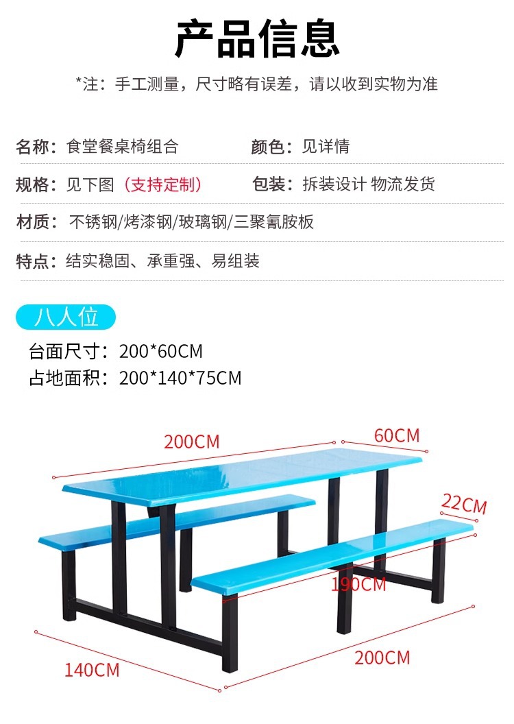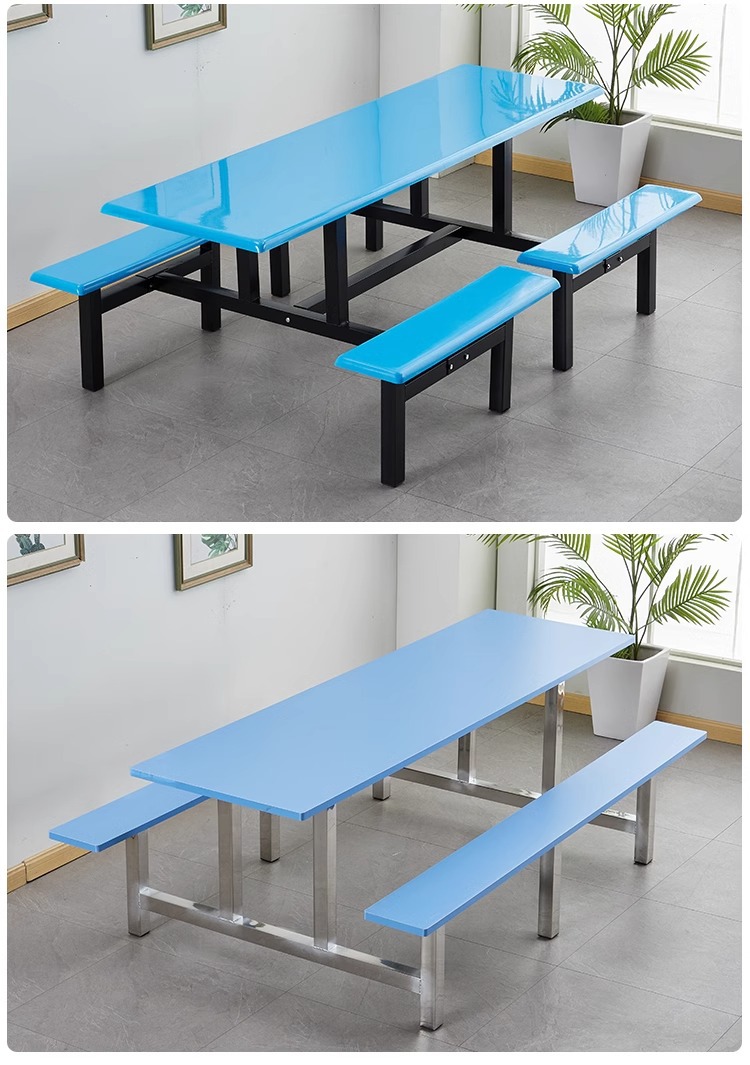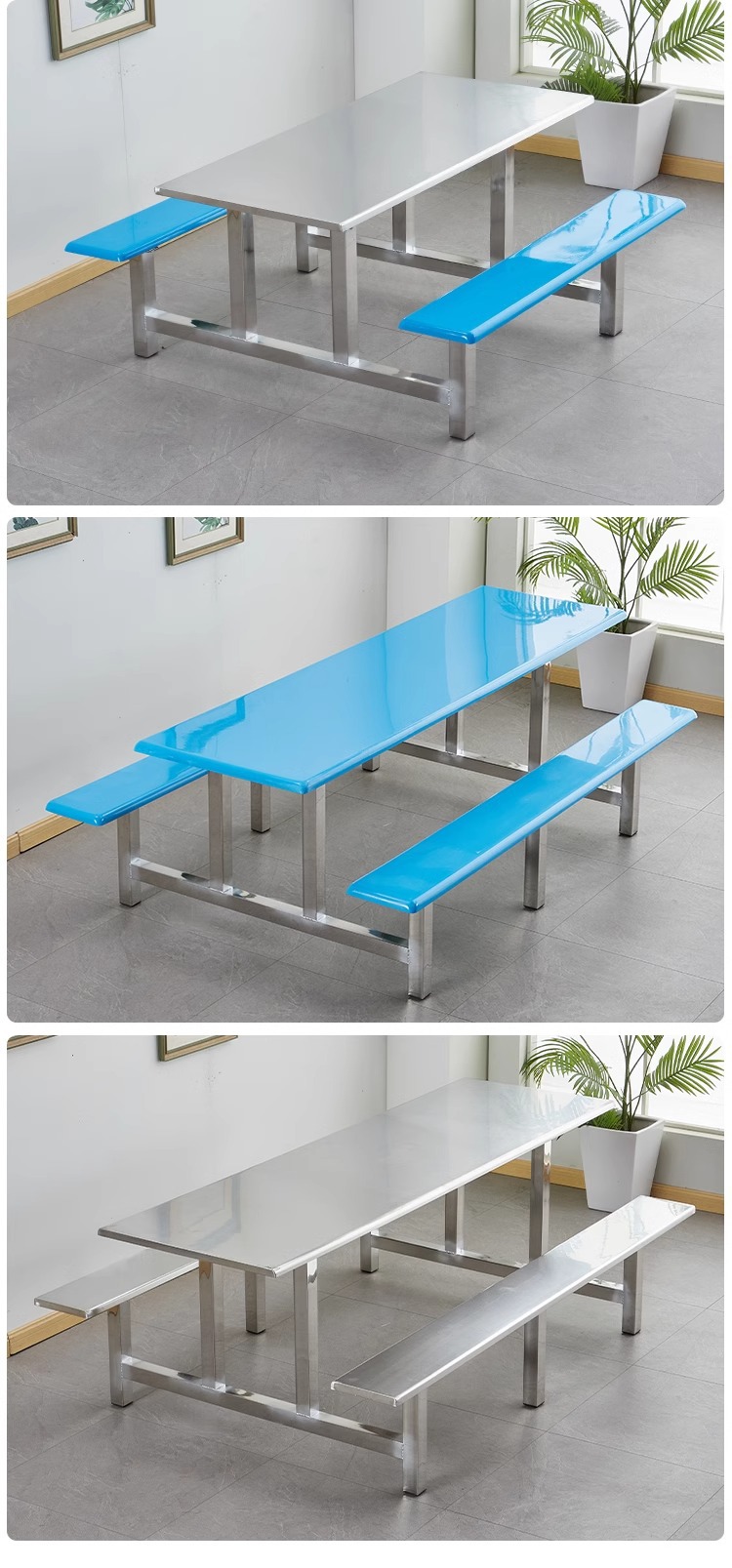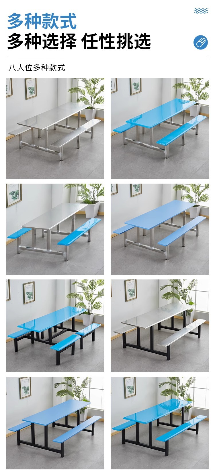 食堂餐桌椅学校工厂员工快餐桌4人6人8人不锈钢连体餐桌椅厂家