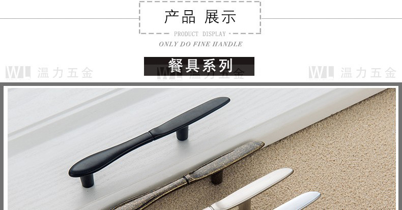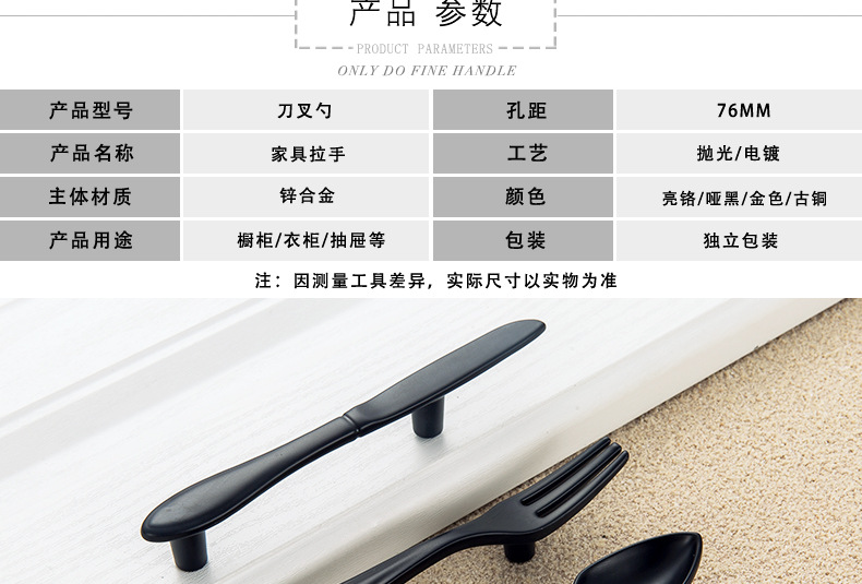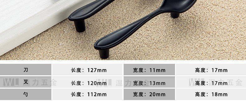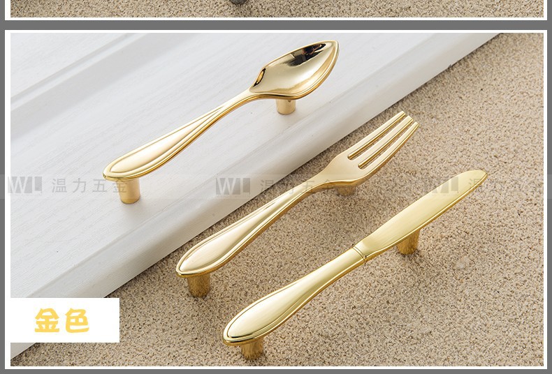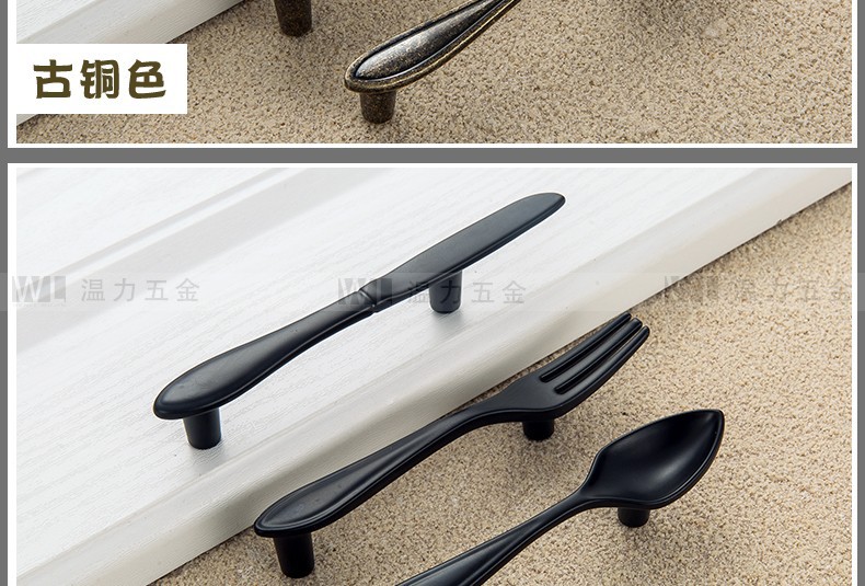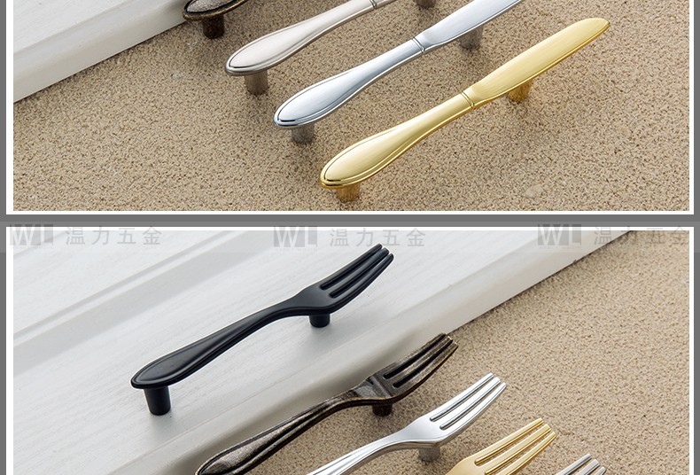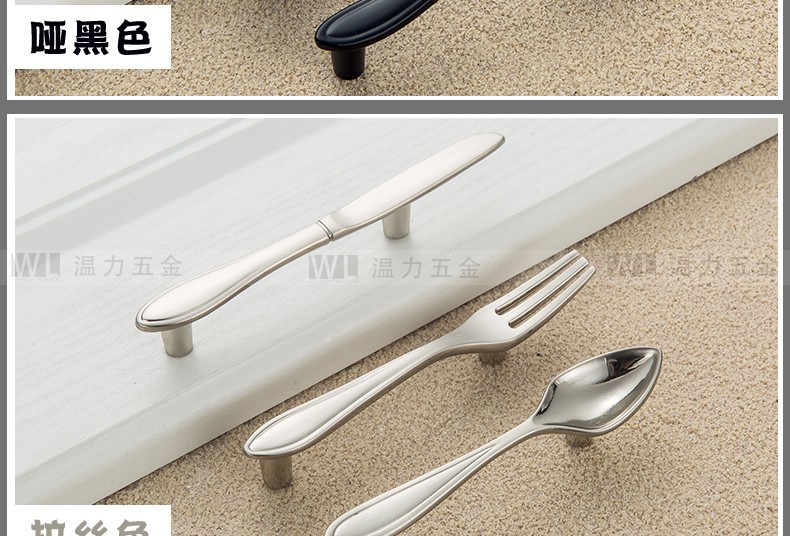 Pegangan Kreatif Pisau Sederhana Modern, Garpu dan Sendok Peralatan Makan Pintu Kabinet Pegangan Furnitur Kabinet Perunggu Hitam Matte Perak Cerah
