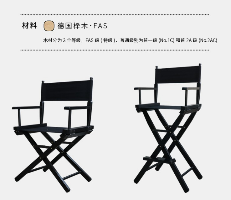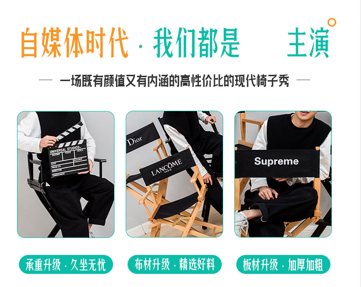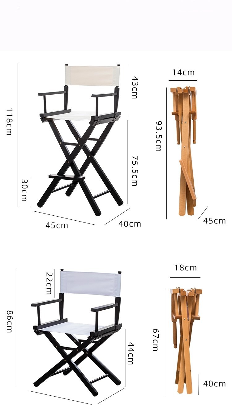 Kursi direktur lipat kayu Solid, kursi malas kanvas luar ruangan, kursi berkemah, kursi rias, kursi bar, alat peraga kursi tampilan