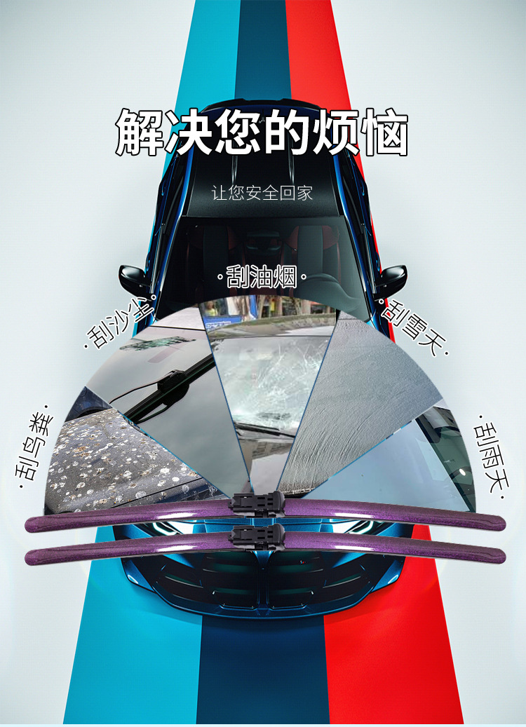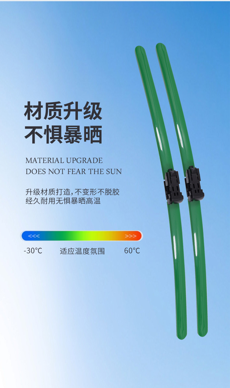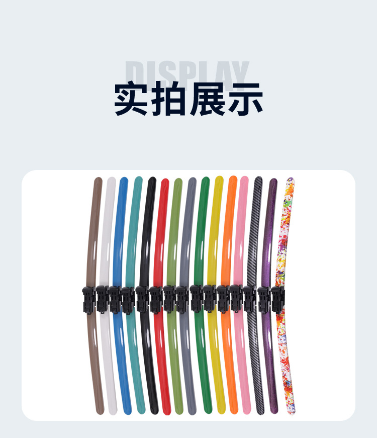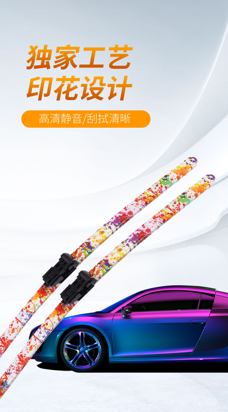 Wiper mobil grosir warna-warni, wiper universal tanpa bingkai yang senyap dan dapat dimodifikasi secara personal dalam warna ungu, putih, merah, biru, kuning, hijau, dan merah muda.