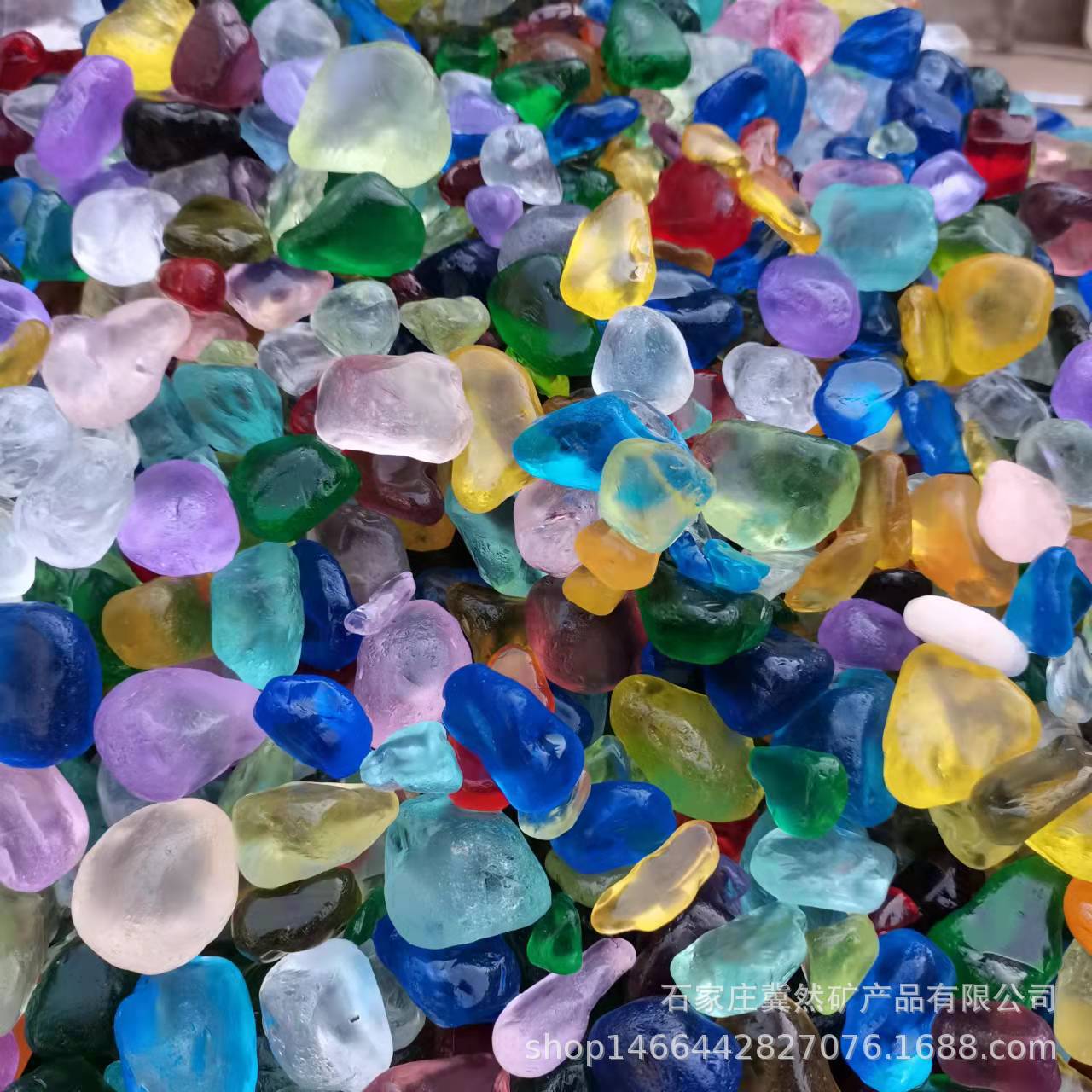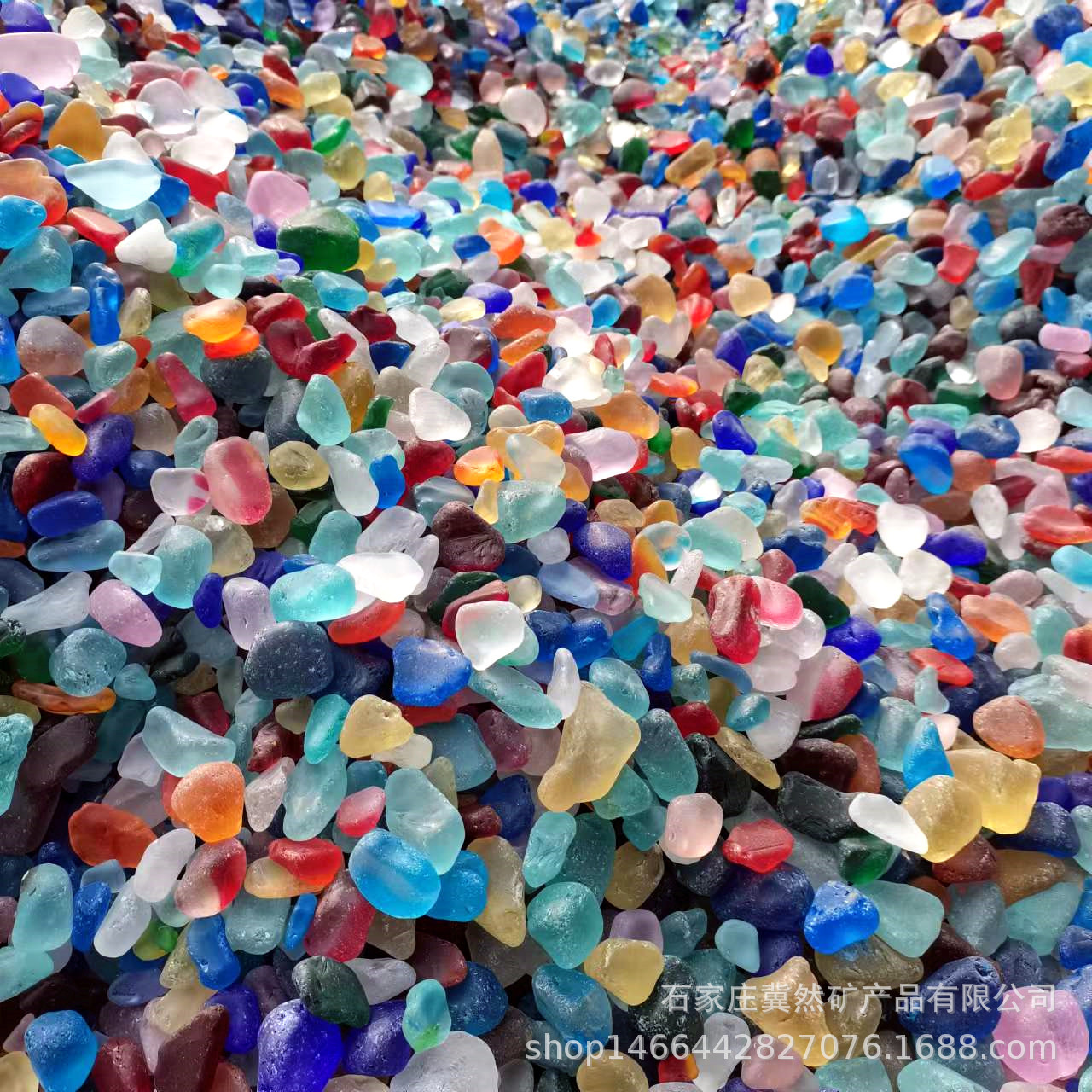 以下为玻璃卵石海玻璃产品,不规则状细腻磨砂面,可用于各种景观装饰,此款多用于水族装饰系列,挖宝填充石。喷泉铺设造景。
