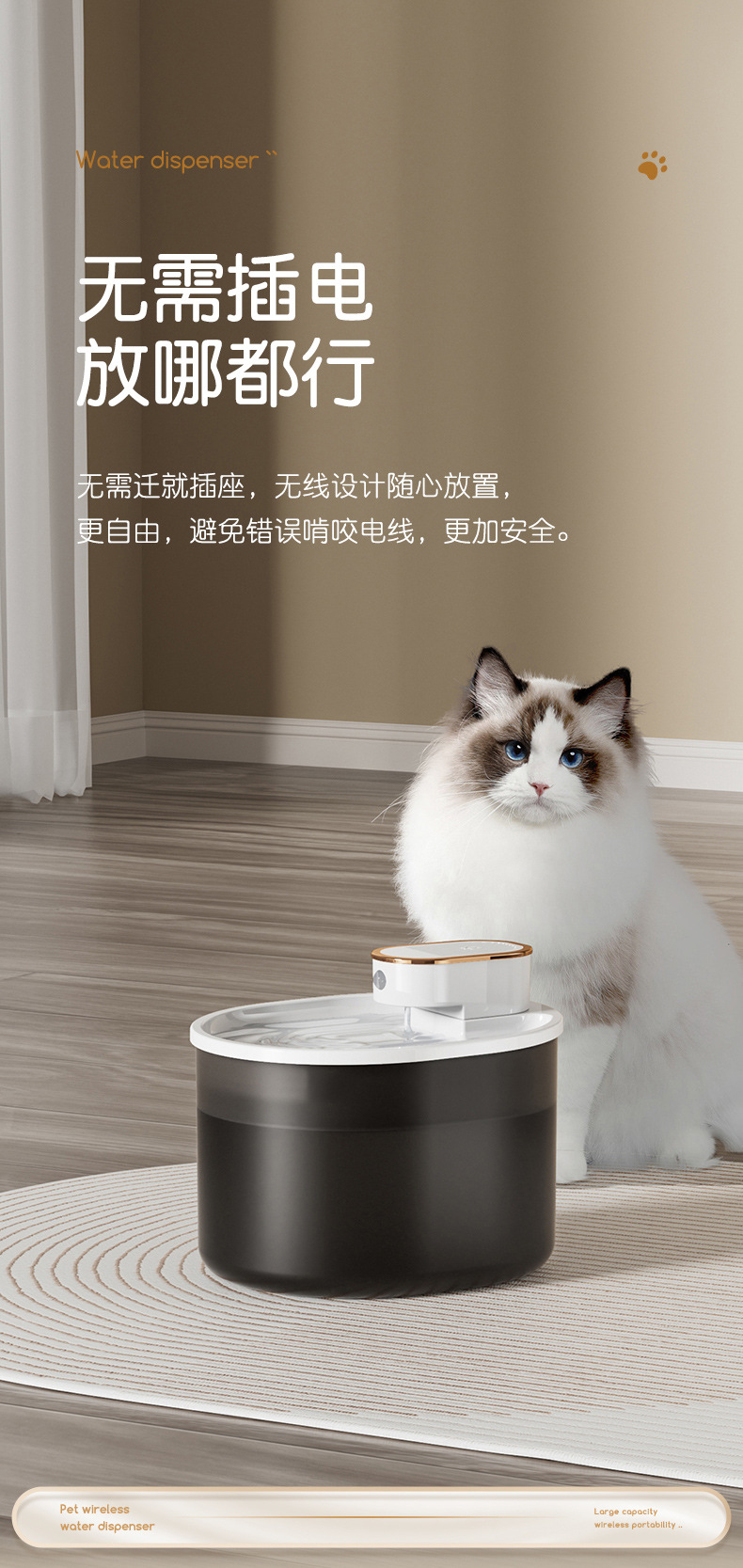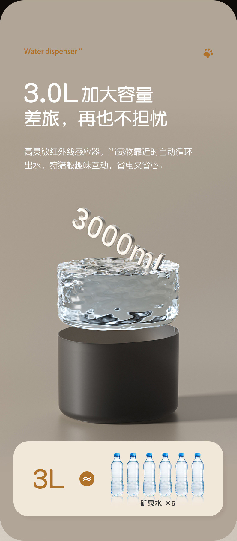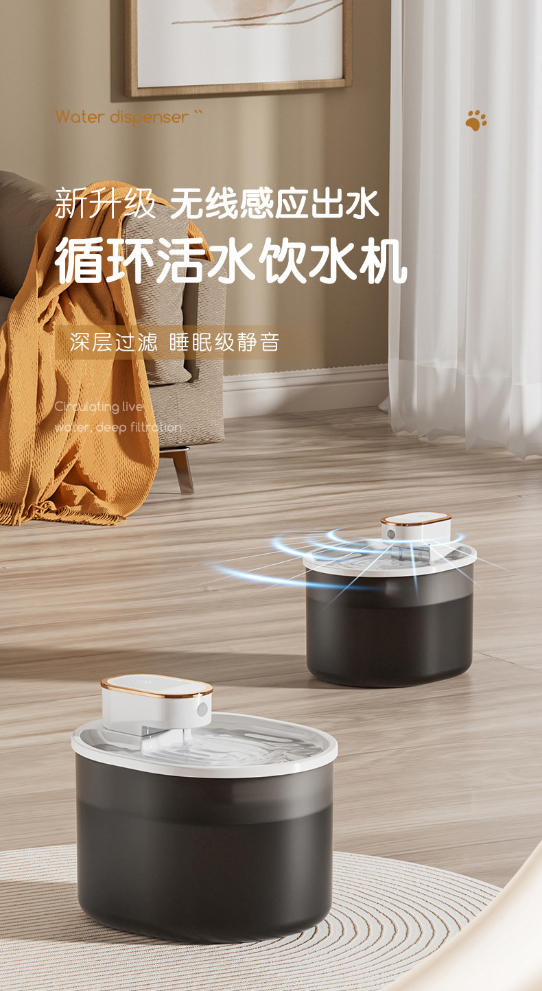 Dispenser air nirkabel pintar untuk kucing peliharaan, perlengkapan anjing, sensor inframerah, dispenser air isi ulang berkapasitas besar, sensor pintar