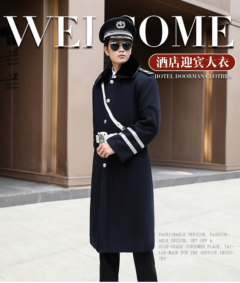Hotel selamat datang etiket pintu Pria dingin mantel tebal katun wol mantel musim dingin mantel seragam kerja pria dan wanita