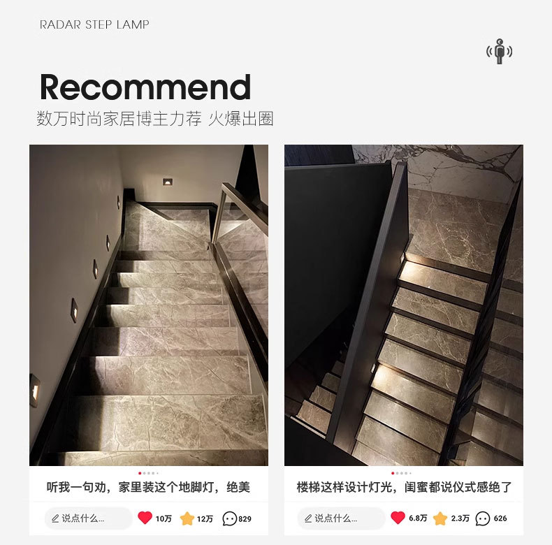 Lampu plafon magnetik 86 tertanam, lampu induksi tubuh tangga lampu langkah lampu sudut lampu tepi