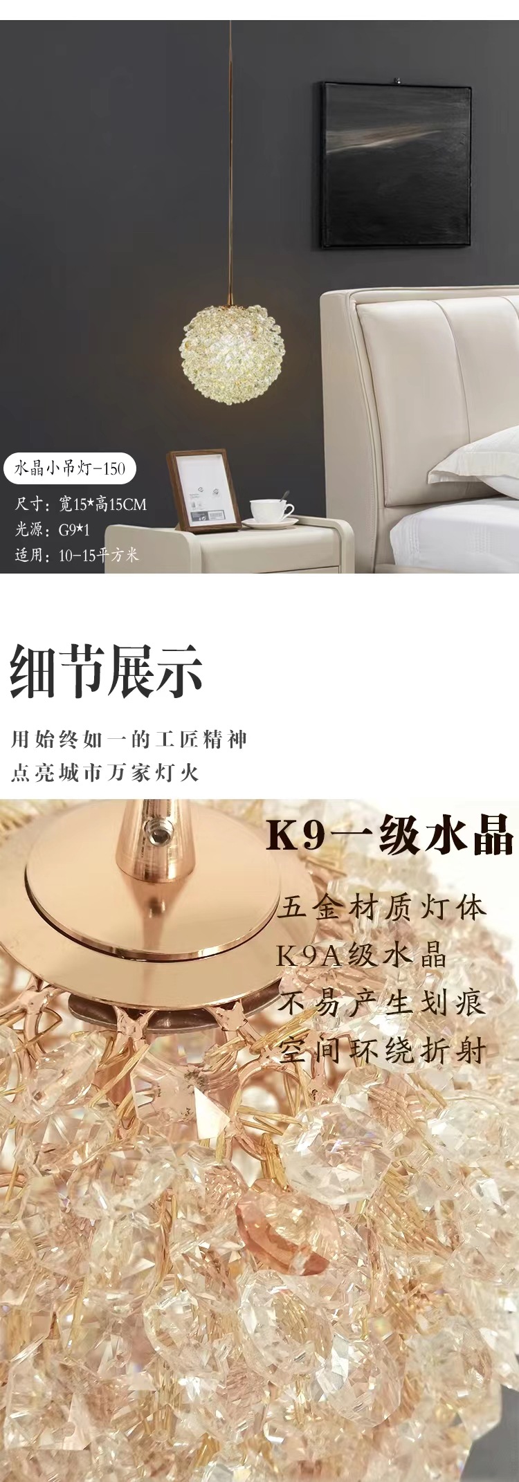 Lampu tidur Lychee yang baru, hangat, romantis, mewah ringan dan kreatif, bergaya Nordik modern, lampu gantung kristal untuk koridor, kamar tidur