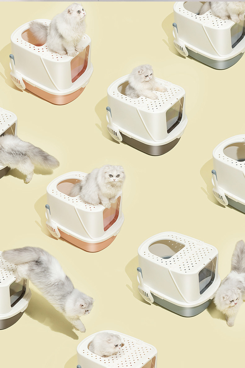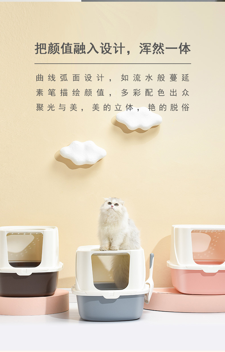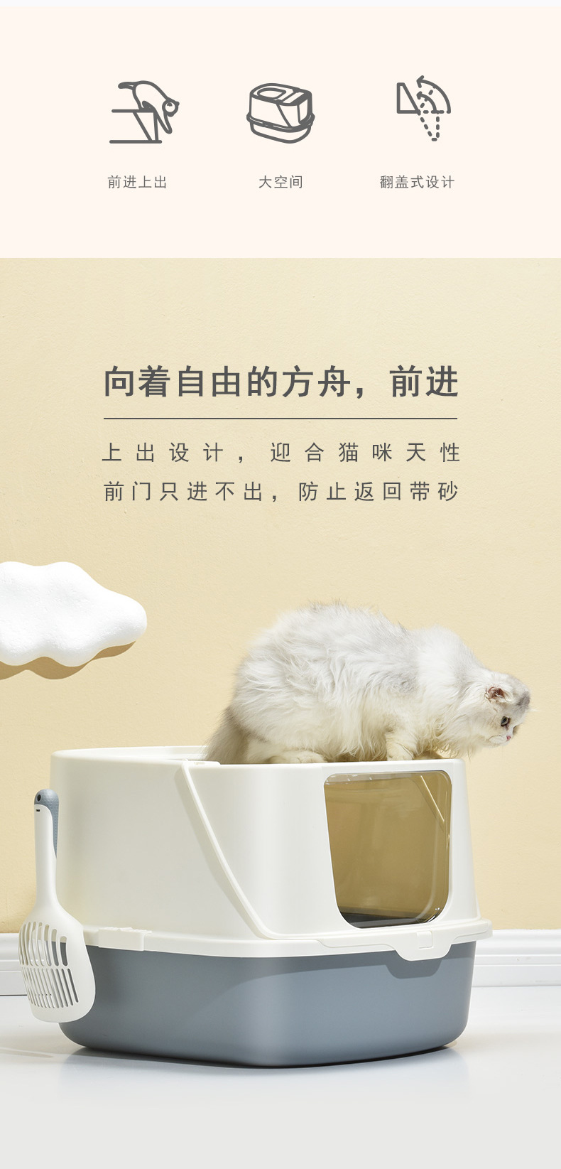 Penjualan langsung pabrik kotak kotoran kucing flip-top anti-percikan ekstra besar yang tertutup sepenuhnya