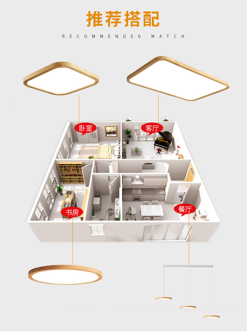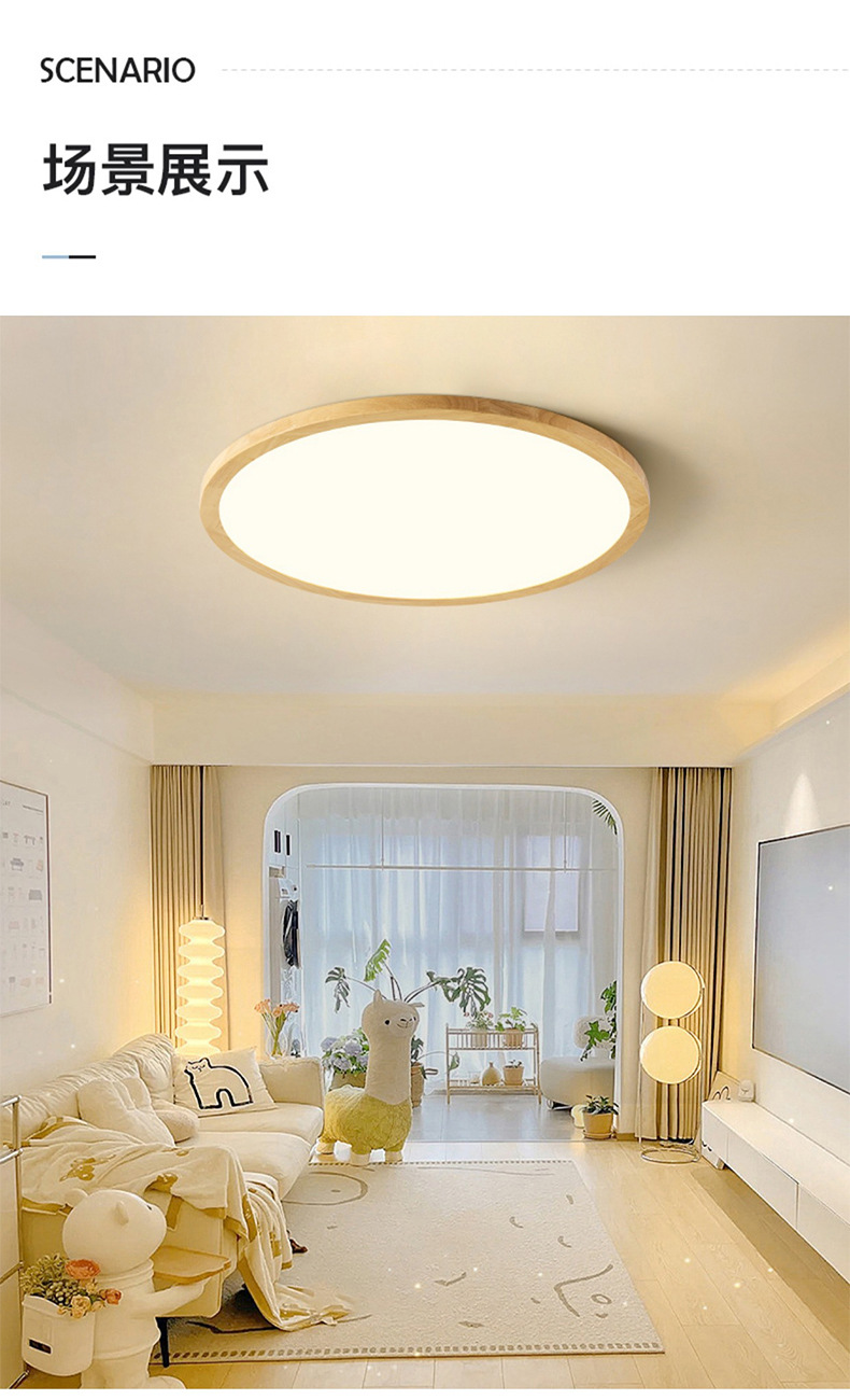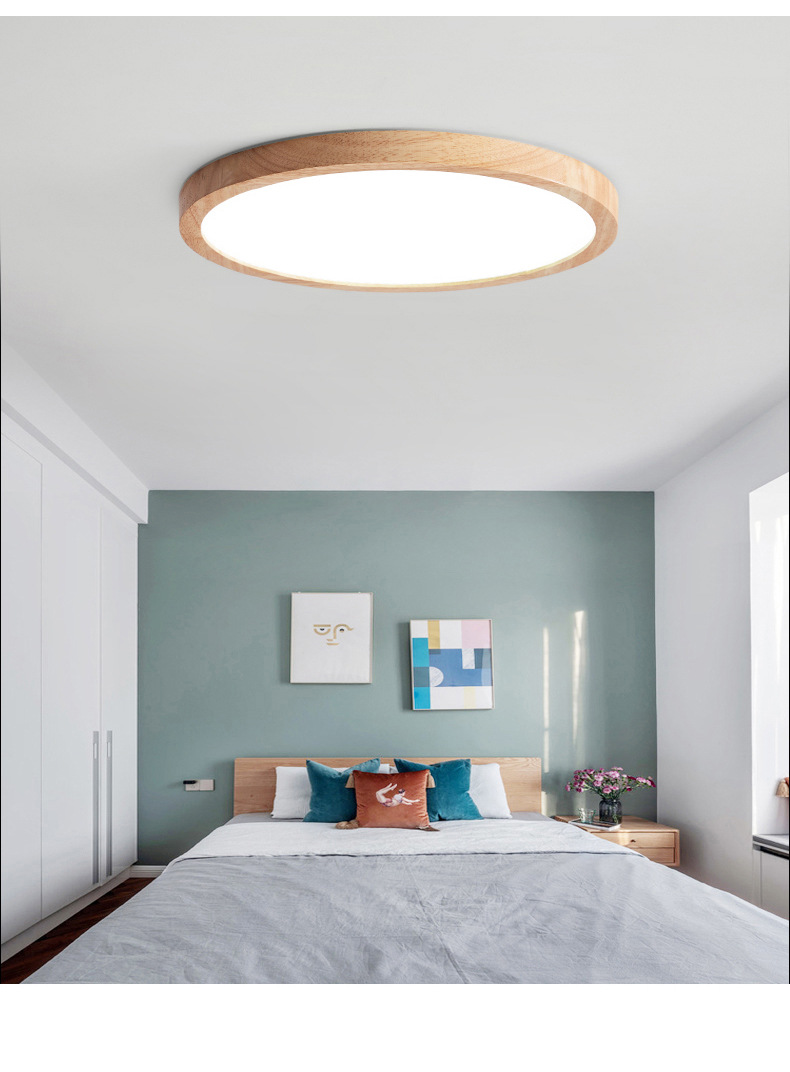 Lampu langit-langit LED Jepang ultra-tipis lampu ruang makan ruang buku kamar tidur gaya log Nordik minimalis lampu ruang tamu kayu solid
