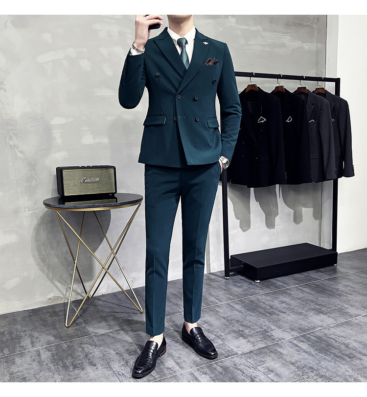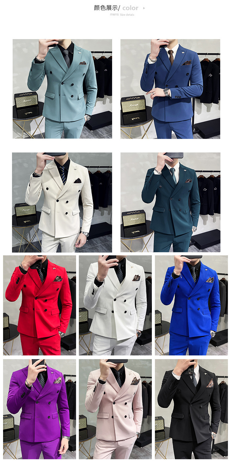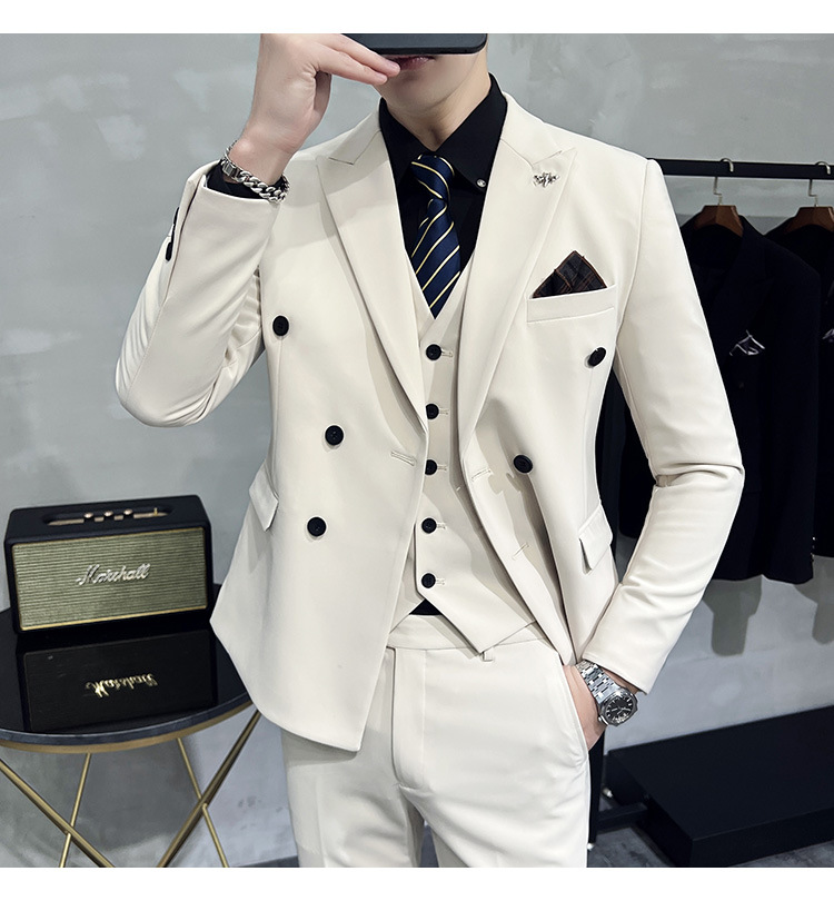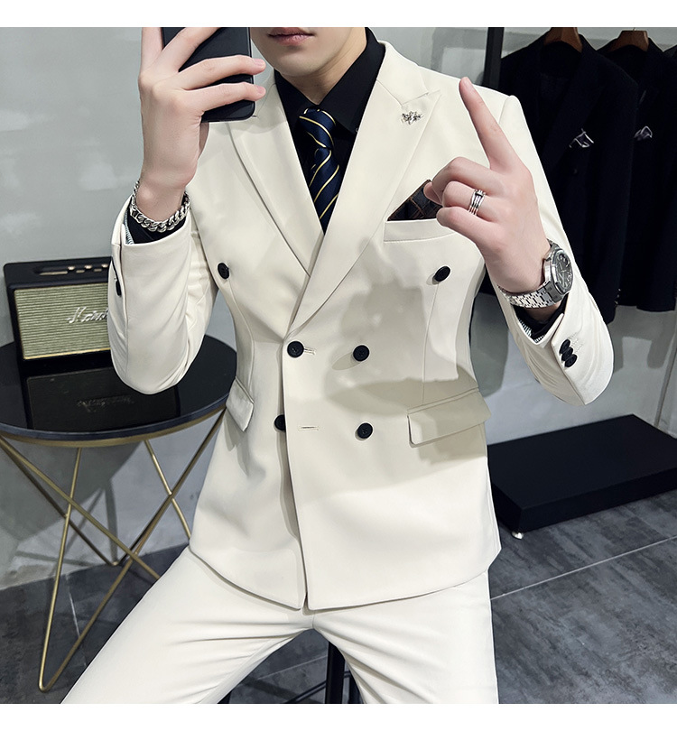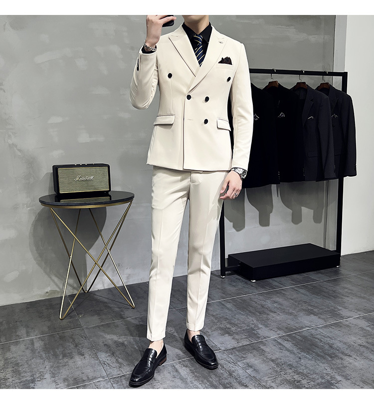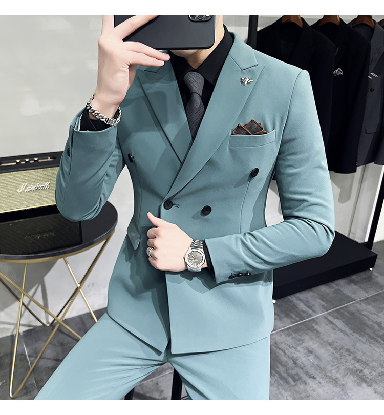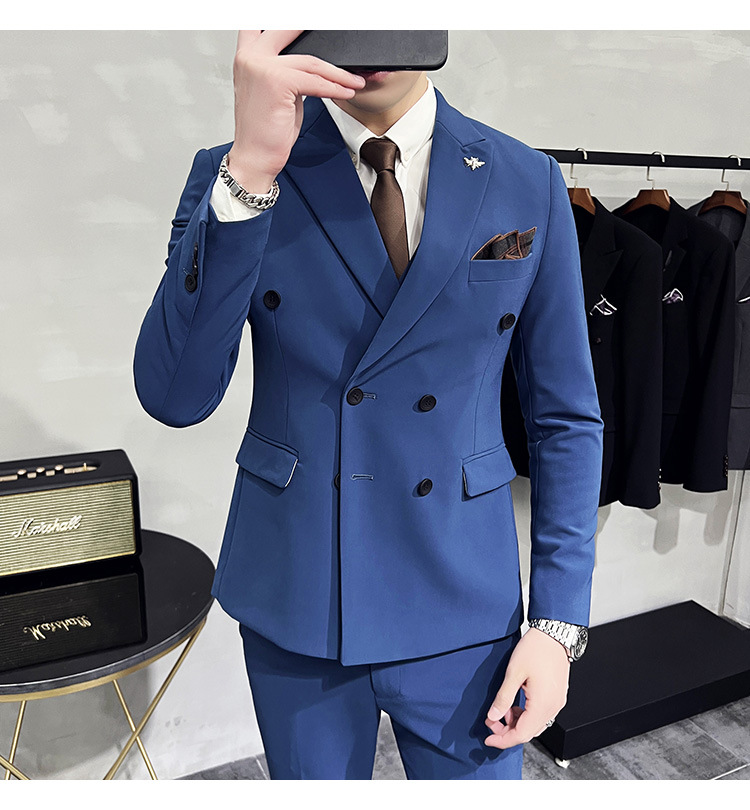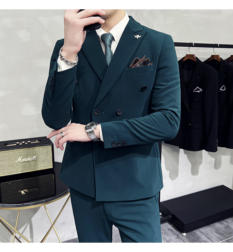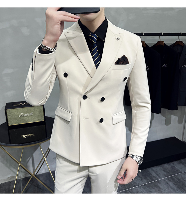 Setelan jas pria kualitas tinggi empat musim setelan jas kancing dua baris tampan setelan tuan rumah pengantin