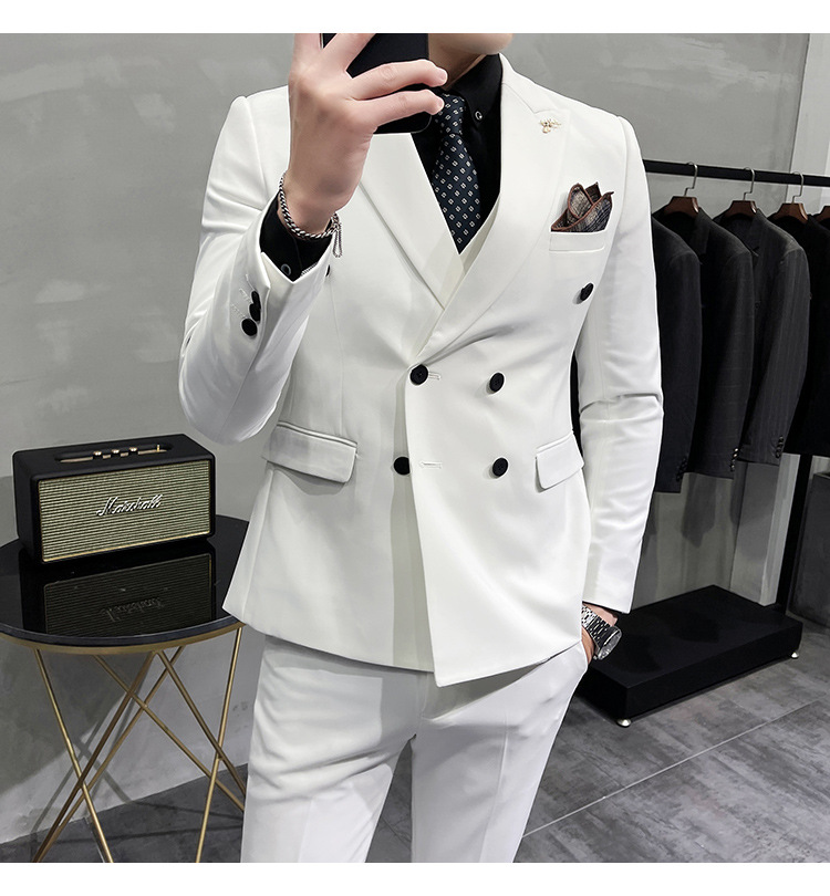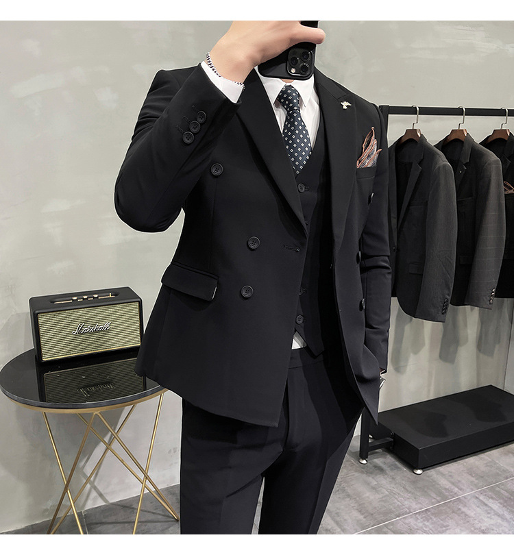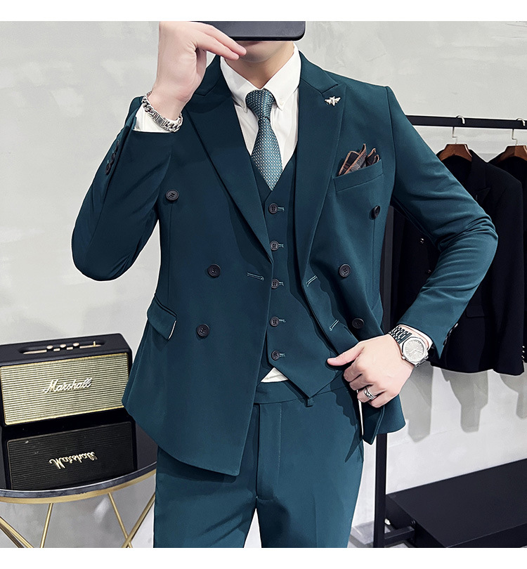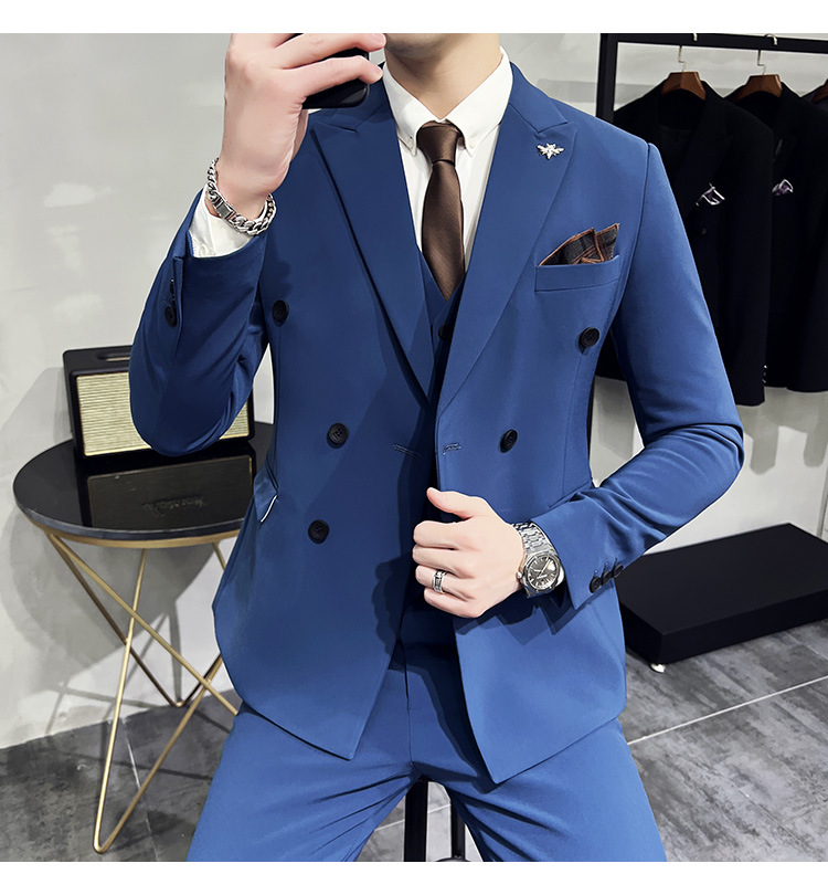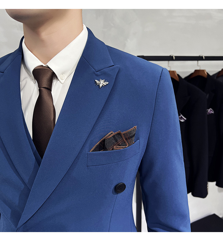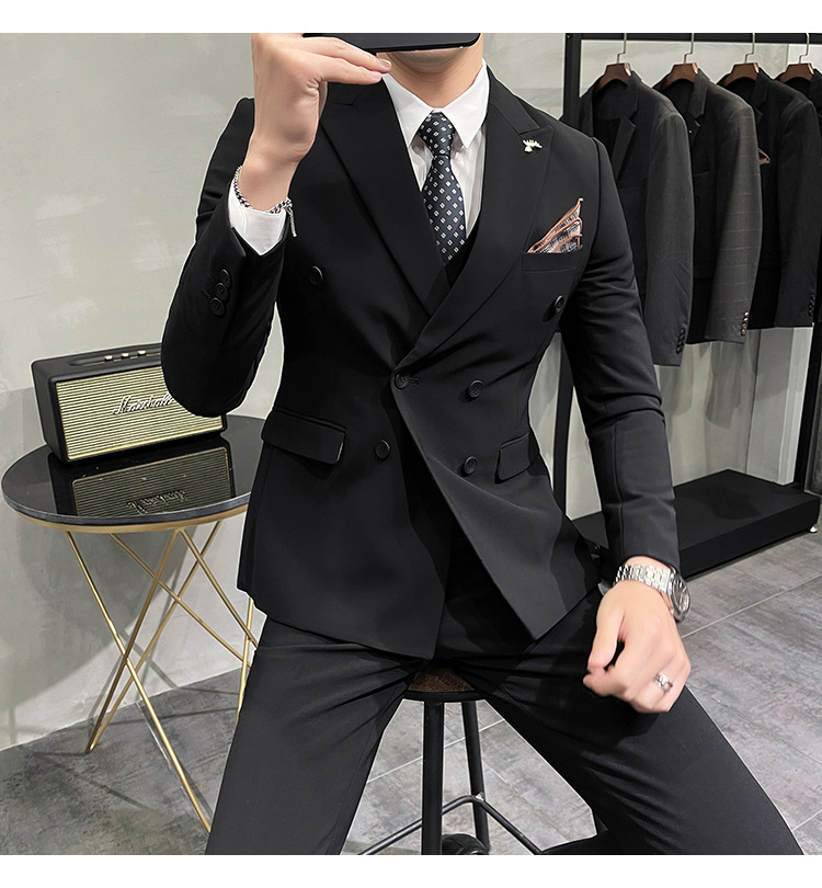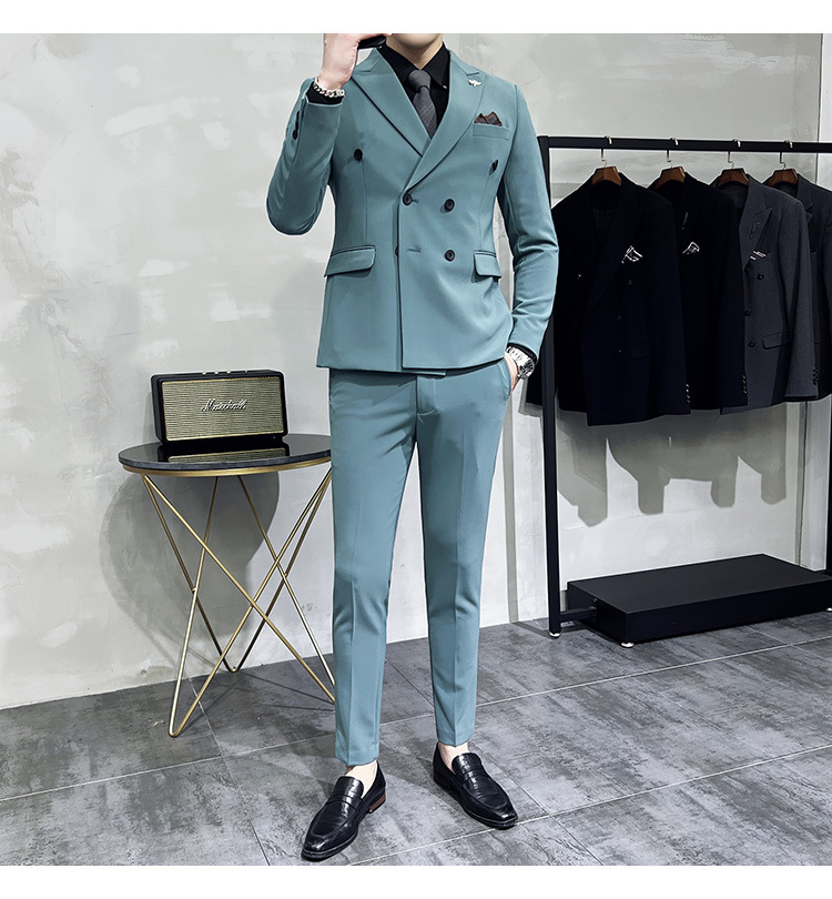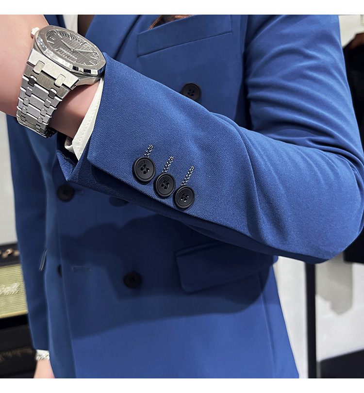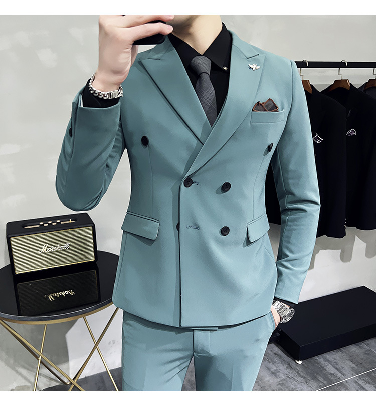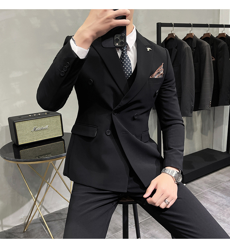 Setelan jas pria kualitas tinggi empat musim setelan jas kancing dua baris tampan setelan tuan rumah pengantin