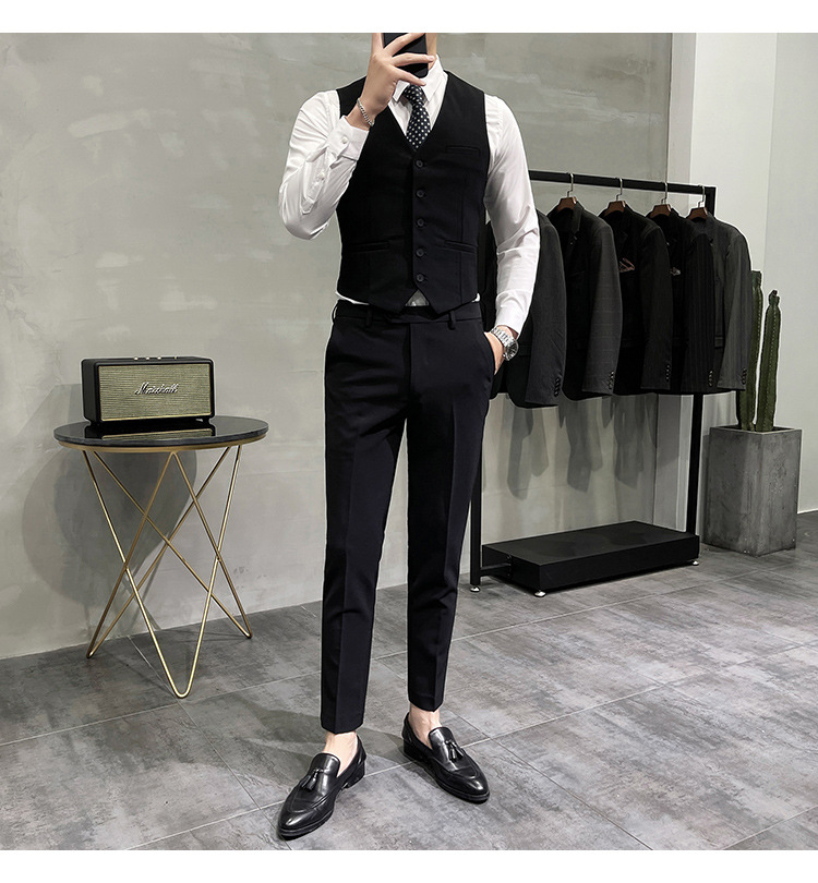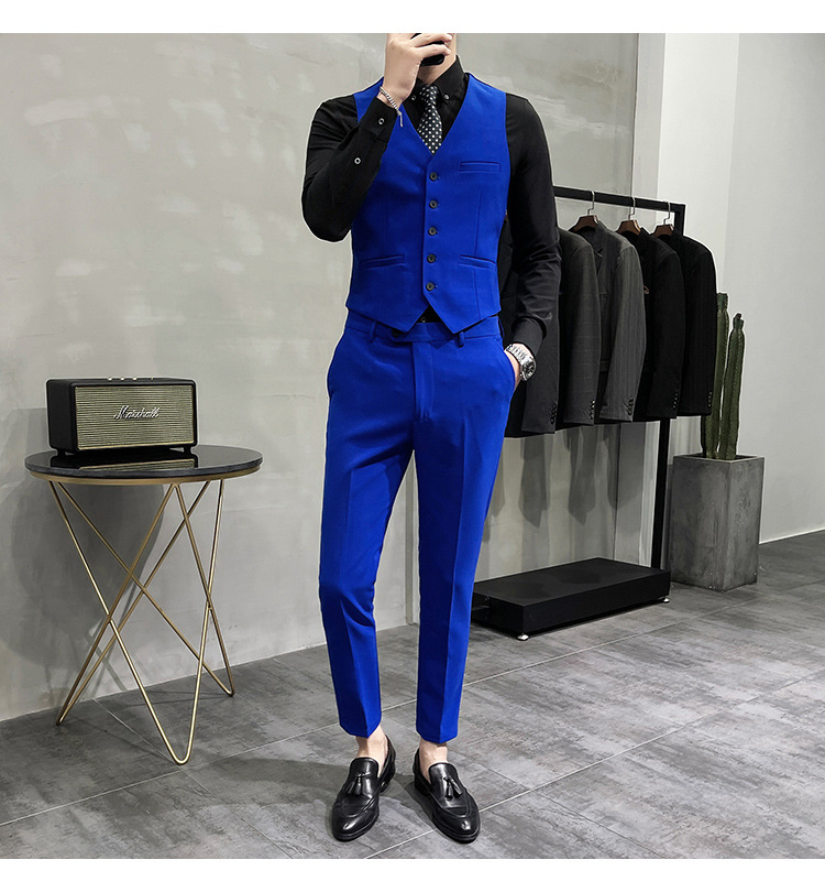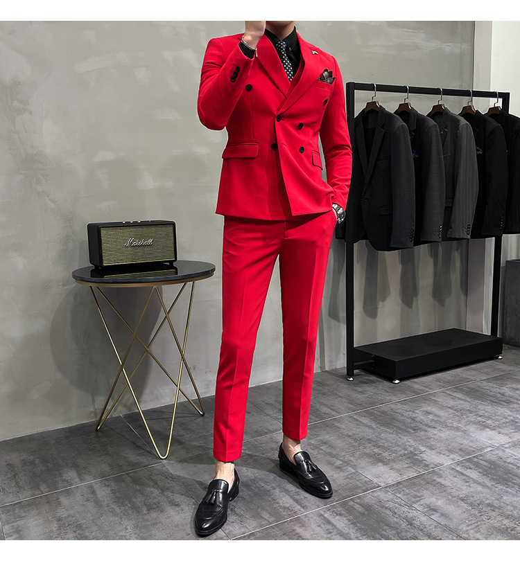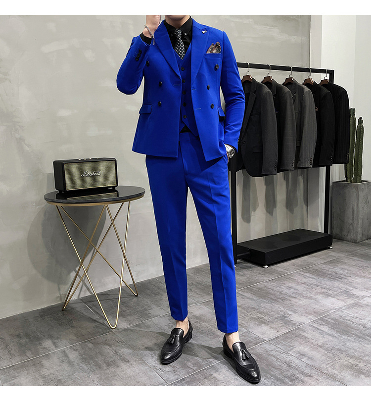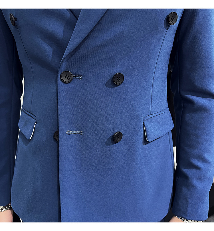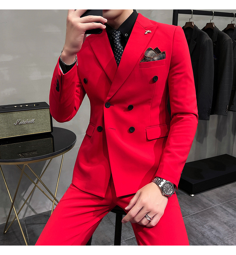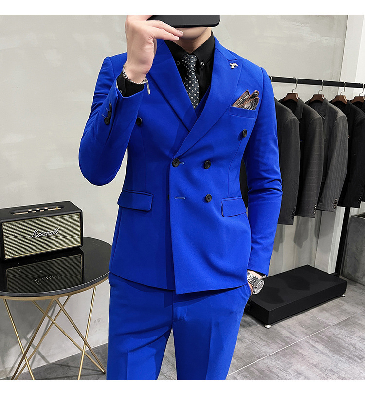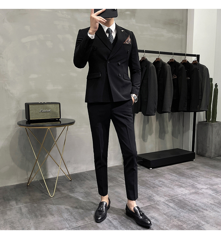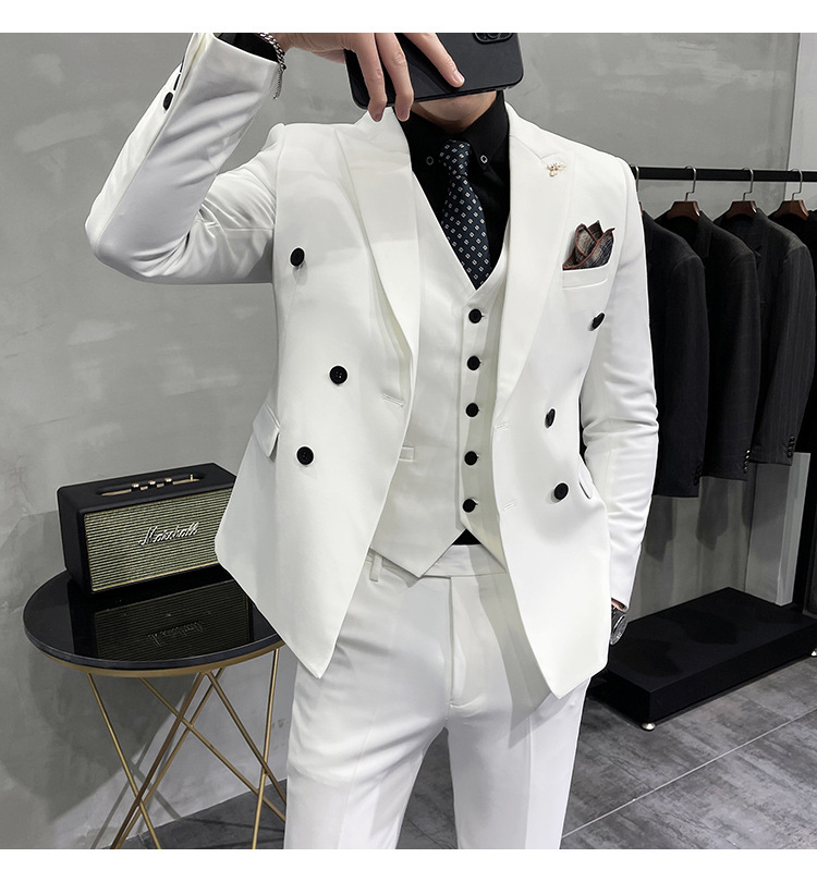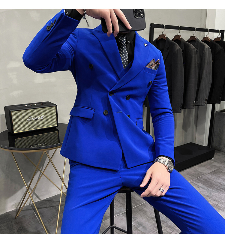 Setelan jas pria kualitas tinggi empat musim setelan jas kancing dua baris tampan setelan tuan rumah pengantin