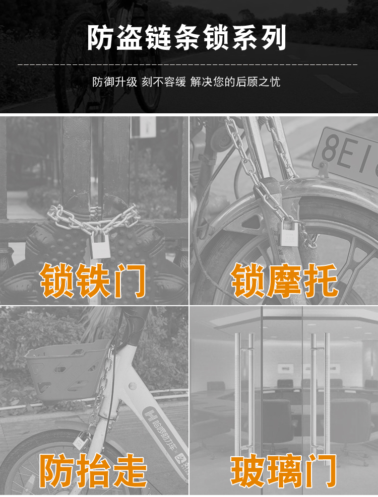 Kunci rantai sepeda roda tiga, rantai anti-maling, kunci rantai besi anti geser, kunci pintu mobil baterai listrik sepeda
