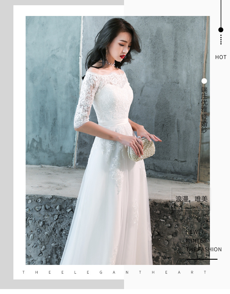 Gaun pengantin ringan gaya baru 2026, gaun pengantin off-shoulder bergaya vintage Hepburn, ramping, sederhana, seperti peri, sangat ethereal.