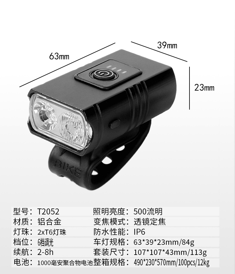 Luomen lampu sorot sepeda T6 ganda, lampu depan tetap, lampu jauh dan dekat, lampu luar ruangan dapat disesuaikan