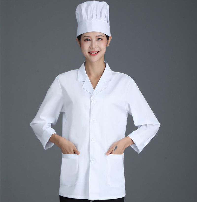 Seragam Koki Sekolah TK Kantin Kantin Koki Pakaian Kerja Pria dan Wanita Katun Bernapas Musim Gugur dan Musim Dingin Pakaian Dapur Lengan Panjang