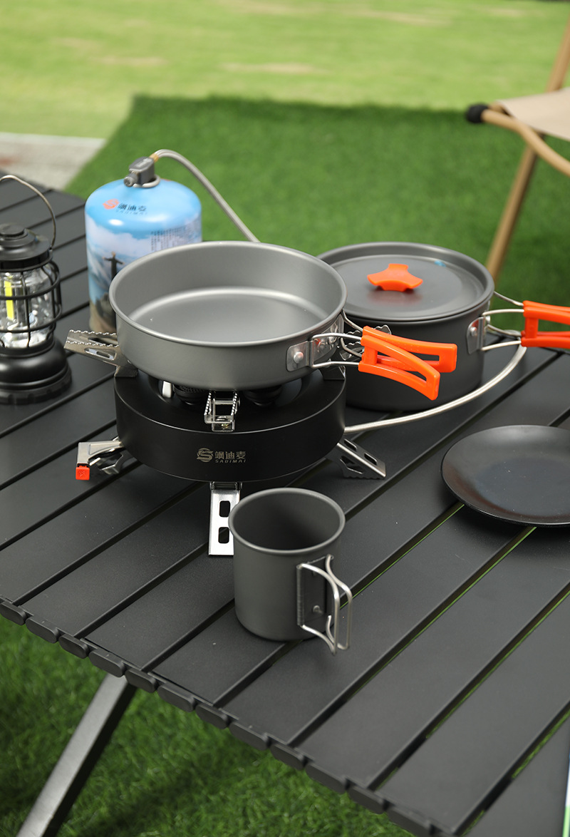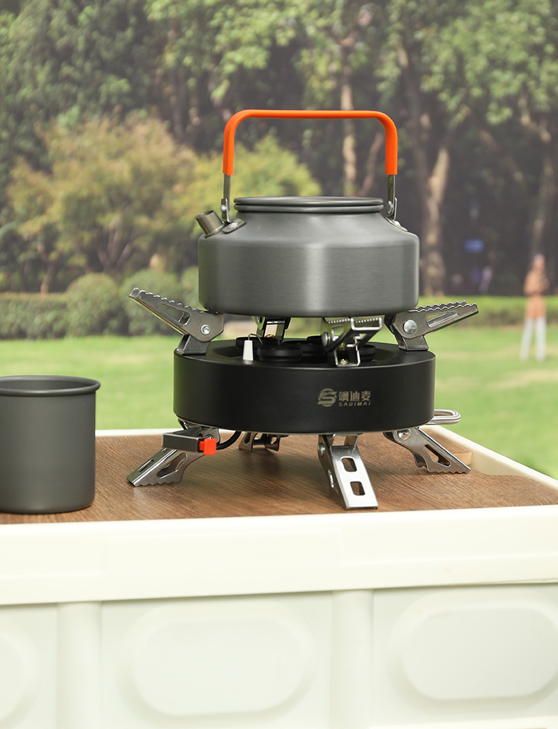 Kompor gas piknik anti angin, kompor berkemah set penuh, kompor Optimus portabel, kompor kartu anti angin luar ruangan