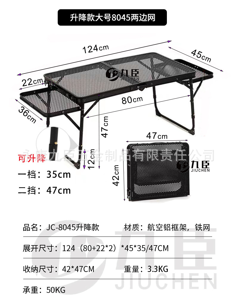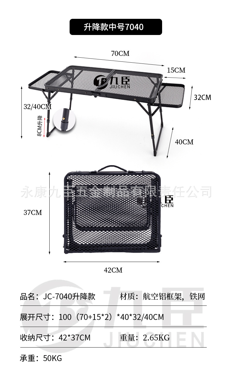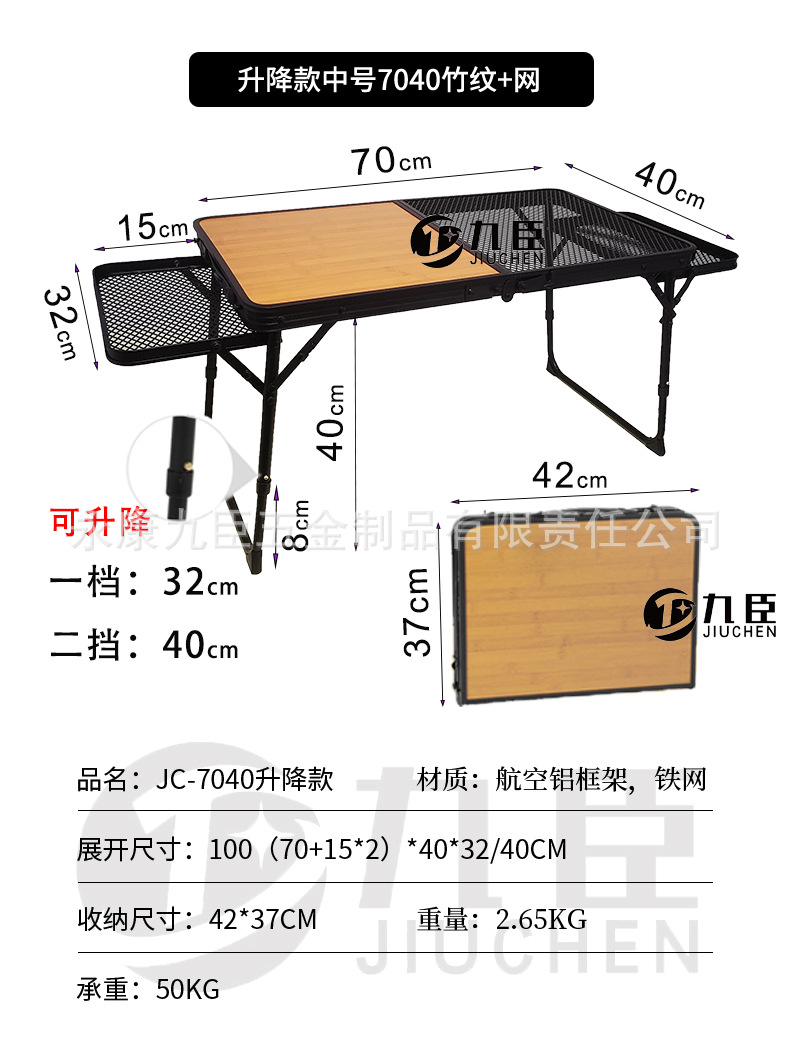 Meja kopi barbeku untuk berkemah, Meja lipat bahan Aloi aluminium, meja kopi piknik dan barbekyu luar ruangan dapat disesuaikan, pabrik