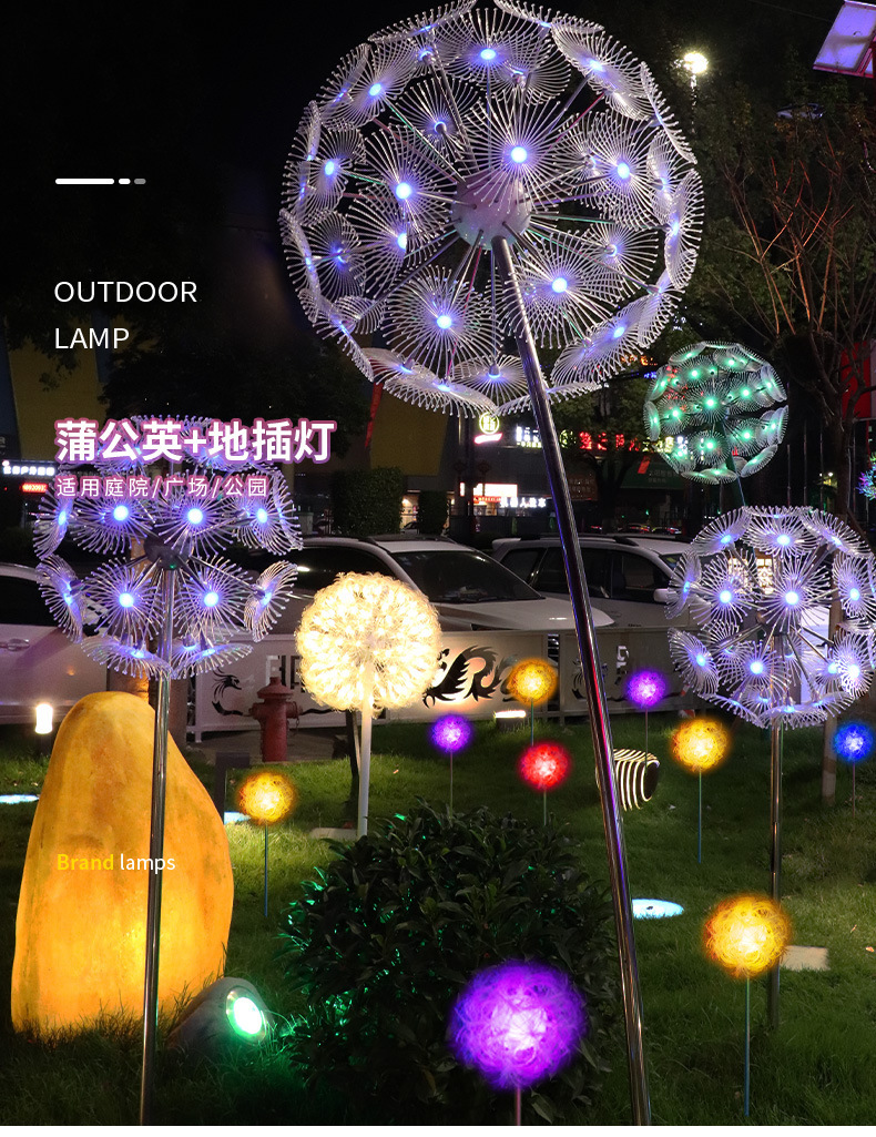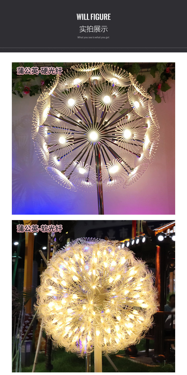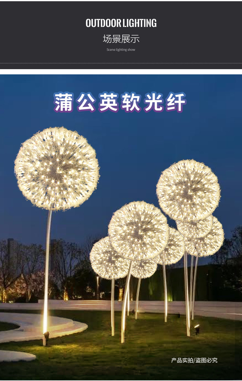 Lampu dandelion serat optik buatan, lampu dekorasi rumput, lampu teknik luar ruangan tahan air, lampu taman lanskap teknik taman