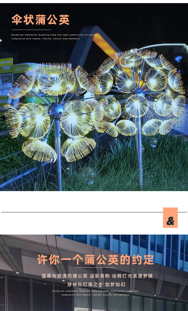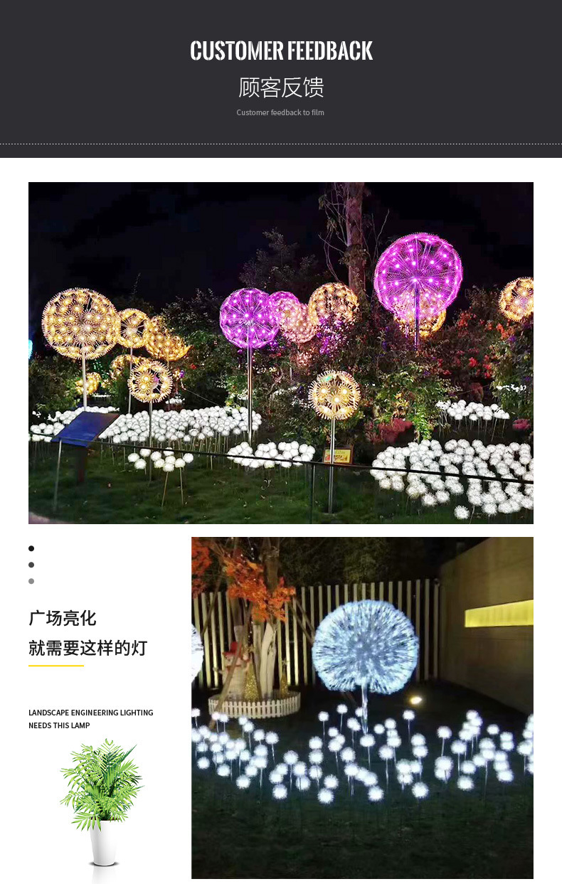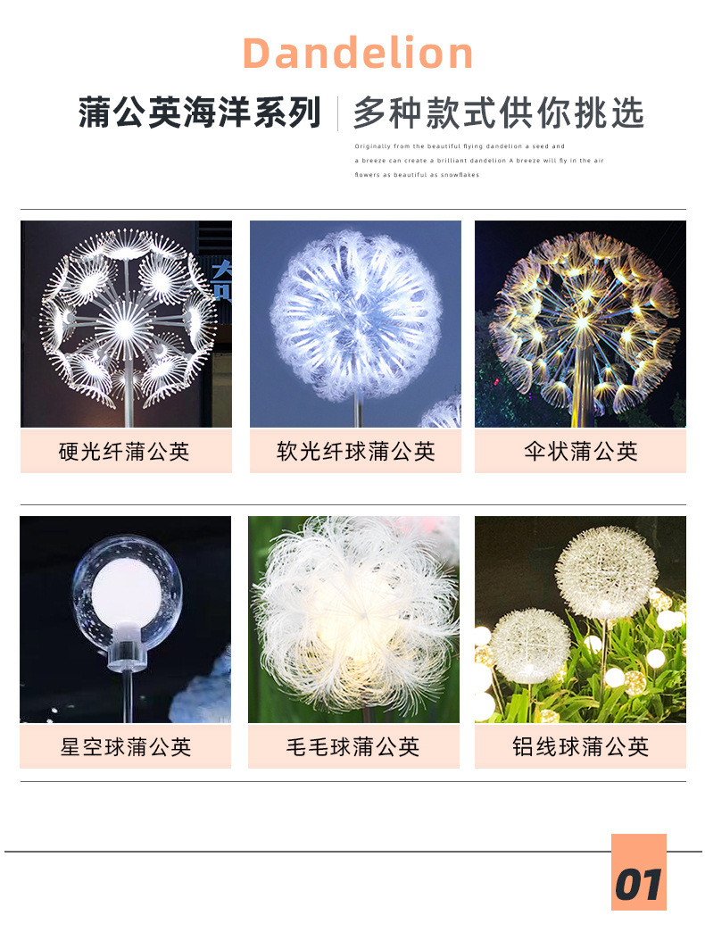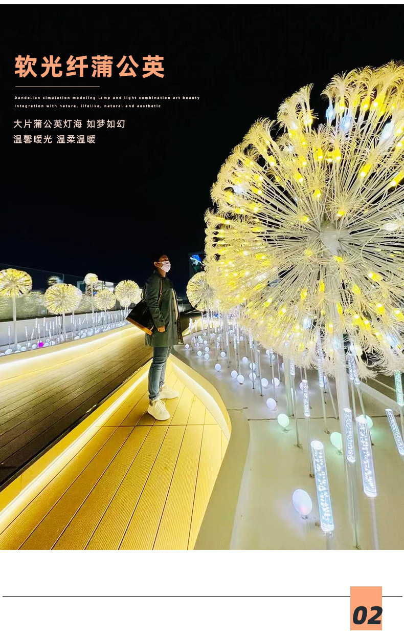 Lampu dandelion serat optik buatan, lampu dekorasi rumput, lampu teknik luar ruangan tahan air, lampu taman lanskap teknik taman